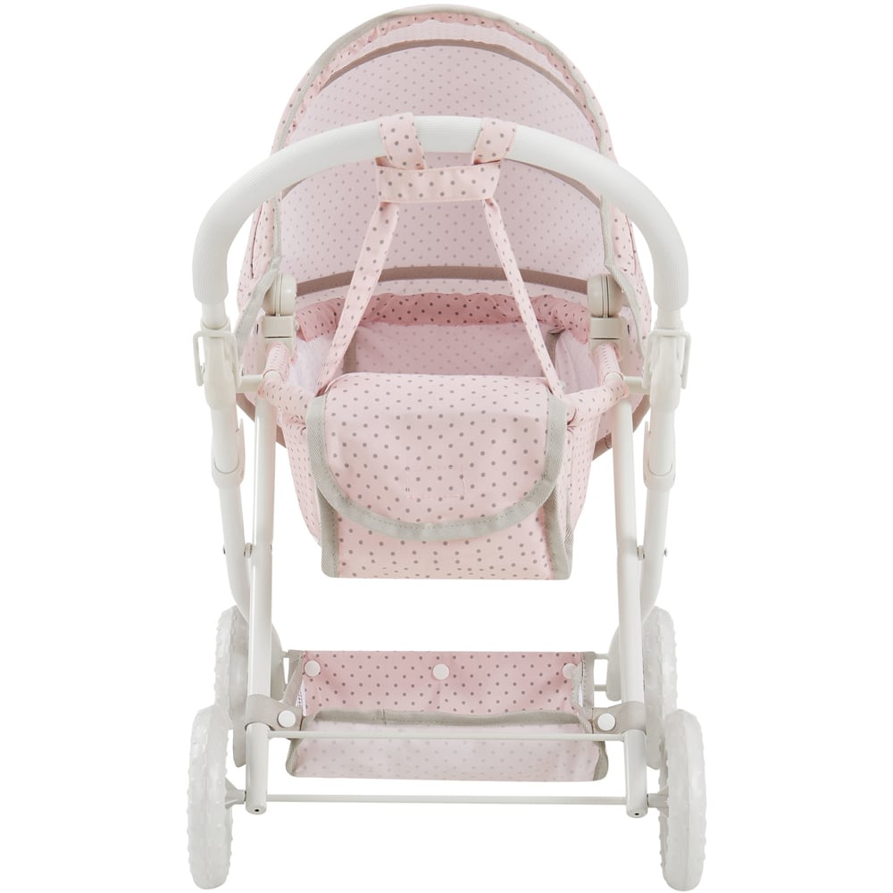 Spark imagination and adventure as little ones stroll their favourite dolls or stuffed animals in a charming pink and grey polka dot pram, featuring a removable bassinet for versatile play. Crafted from lightweight polyester on a child-safe metal frame, it folds easily for travel or tidy storage. With a retractable canopy, all-terrain wheels, detachable diaper bag and padded grip, this buggy ensures every outing is fun and comfortable for toddlers.