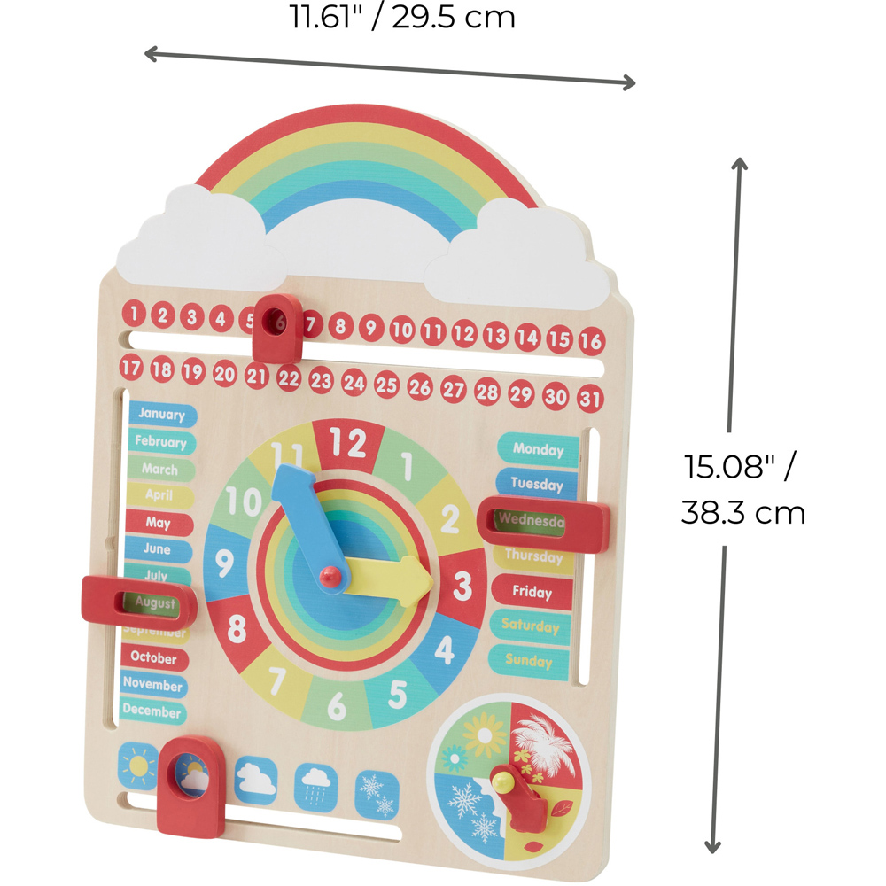 Spark curiosity and make every day an adventure as little ones explore time, weather and seasons with this engaging wooden preschool calendar for daily learning. Children slide vibrant pieces to select the day, month and date, track the weather using fun icons, and spin the illustrated dial to choose the season. In the centre, a movable clock helps kids practise telling the time, making it an interactive kids calendar for classroom or home use that’s perfect for hands-on learning.