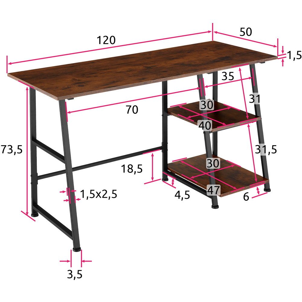 tectake 2 Shelf Dark Wood Trapezoidal Frame Desk