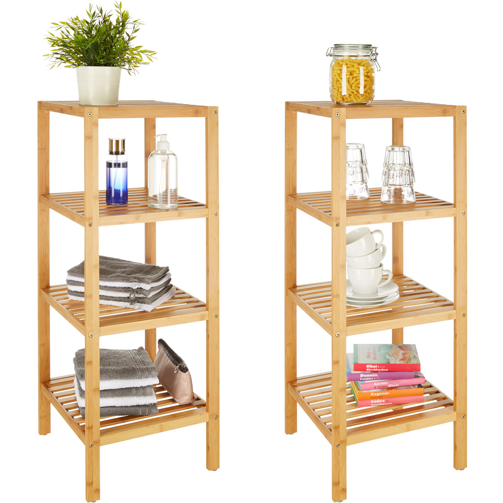 tectake 4 Shelf Bamboo Standing Bathroom Storage Rack