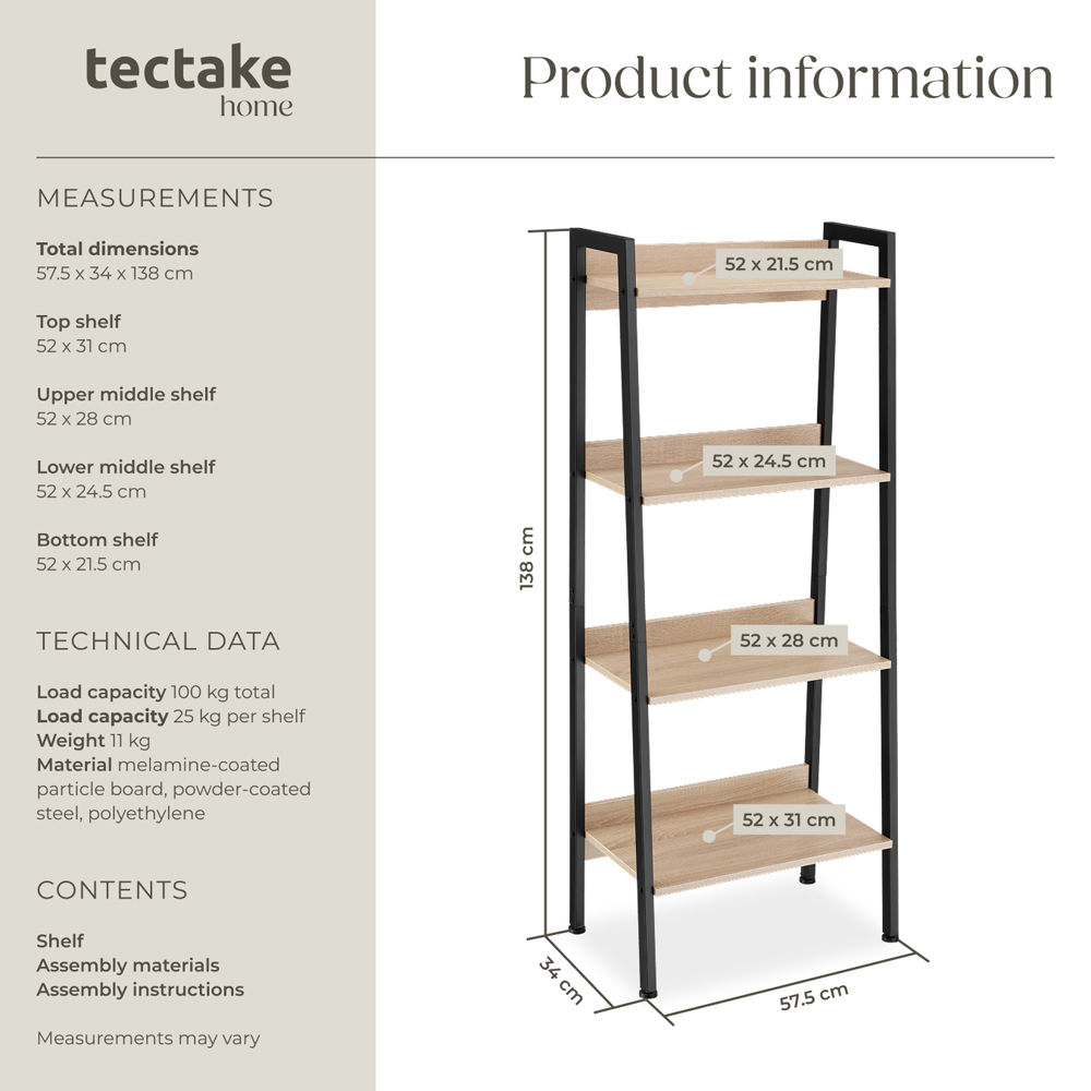 Bring a touch of industrial chic to your living space with a free-standing oak shelving unit designed to balance warm wood light oak shelves and a sturdy black steel frame in a modern no-fuss style, perfect for displaying treasured décor or keeping essentials organised. Standing at 138cm tall, this 5 tier free-standing shelving unit in an oak finish offers flexibility for any room, whether used as a statement divider or secured against a wall with the included anti-tilt strap. Height-adjustable feet and melamine-coated shelves ensure durability and stability, making it a reliable choice for home storage.