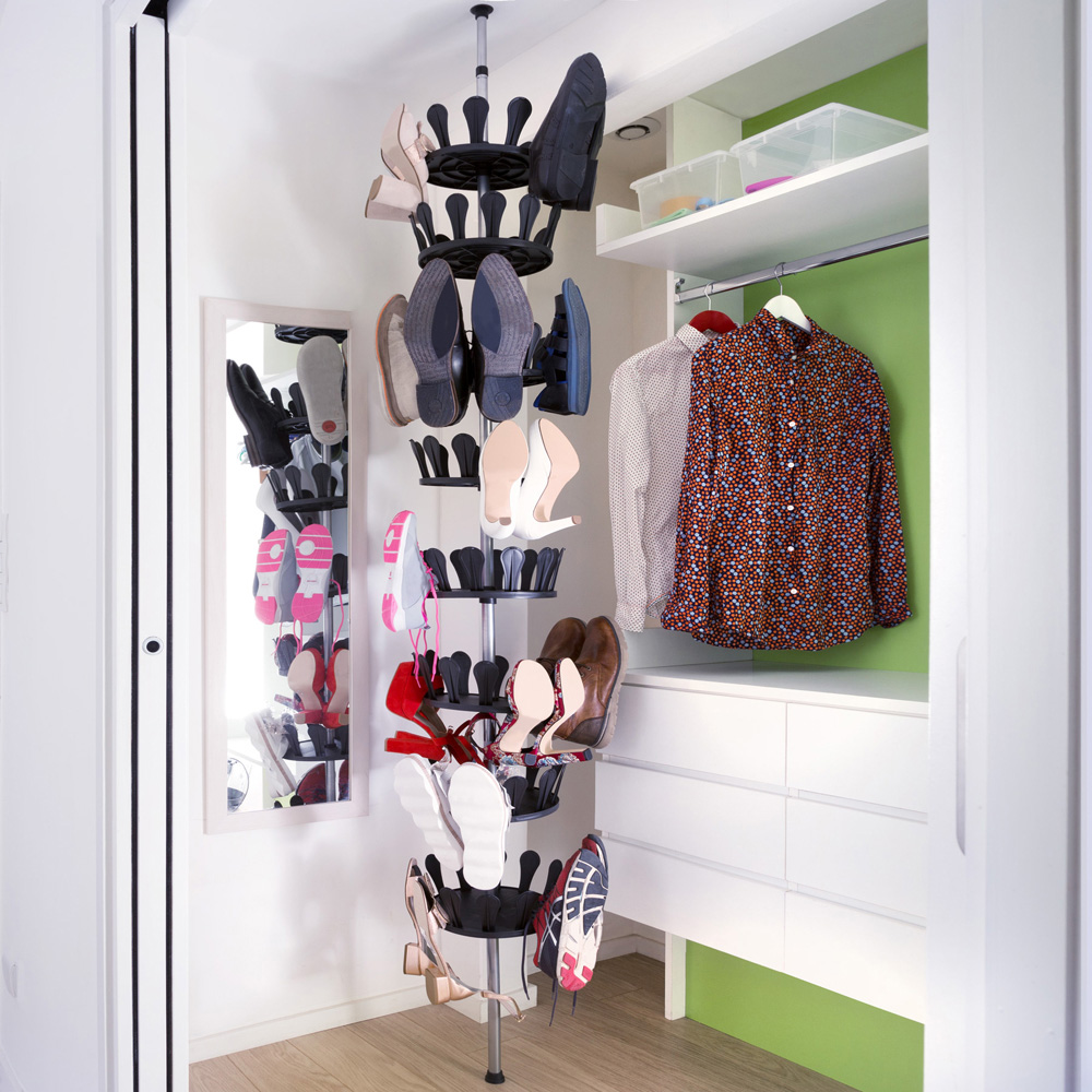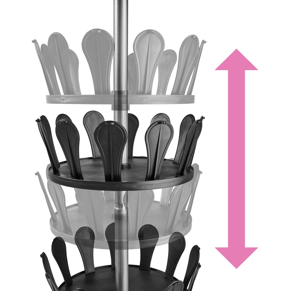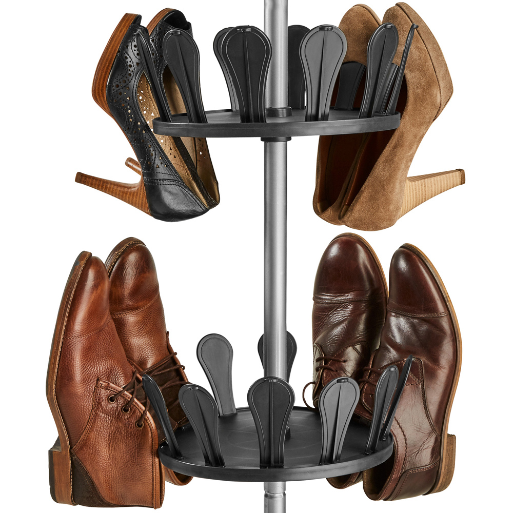 Make the most of your limited floor space with Tectake's innovative shoe carousel, featuring eight rotating tiers that can accommodate up to 96 shoes. This height-adjustable storage solution fits seamlessly into any corner of your bedroom or stands independently, adapting effortlessly to your space. The unique clamping mechanism ensures stability, while the rubber caps protect your floors from damage. Easy to assemble, this shoe rack offers a neat and accessible way to organize your footwear and large accessories, providing a clutter-free alternative to traditional storage options.