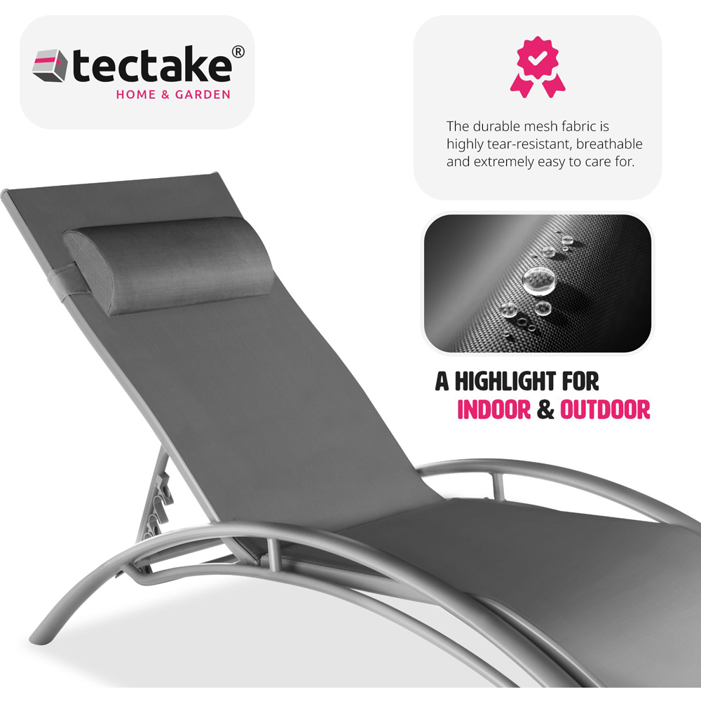 tectake Alina Set of 2 Grey 5 Step Backrest Sun Lounger with Head Cushion