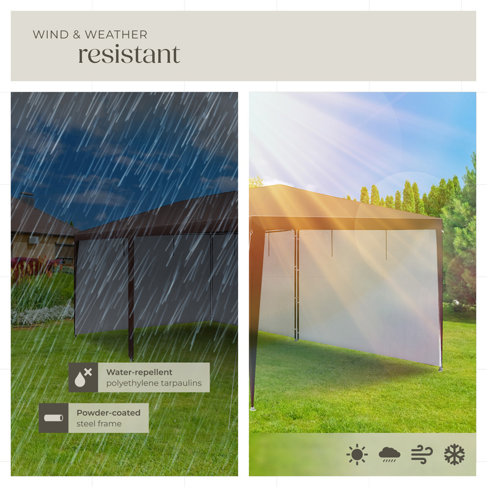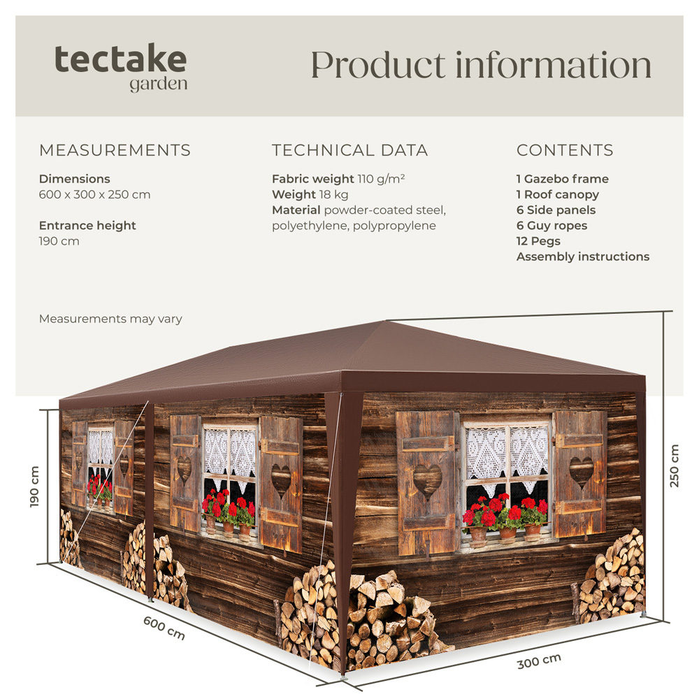 The Alpine Gazebo from tectake combines durable materials, thoughtful functionality, and stylish design to create the perfect outdoor retreat. Whether in your garden or on the go, this gazebo offers both comfort and shelter. The robust plastic canopy and sides are highly waterproof, making them ideal for withstanding any weather conditions. The powder-coated steel frame provides excellent durability, and the hard-wearing side panels offer flexibility; they can be rolled up and secured, or fully removed as needed, ensuring adaptability through the seasons. These Gazebos are perfect for almost any occasion, from a pop-up event to a wedding reception and are heavy-duty despite their lightweight. With stable foot elements, tension ropes, and solid pegs, this gazebo guarantees high stability. The easy-to-use plug-in system ensures quick assembly without the need for tools, making setup fast and straightforward. The Alpine Gazebo is available in different sizes and is perfect for creating a cosy outdoor atmosphere in your garden. Order now and enjoy free delivery to bring this excellent outdoor shelter home today!