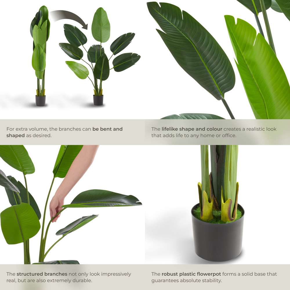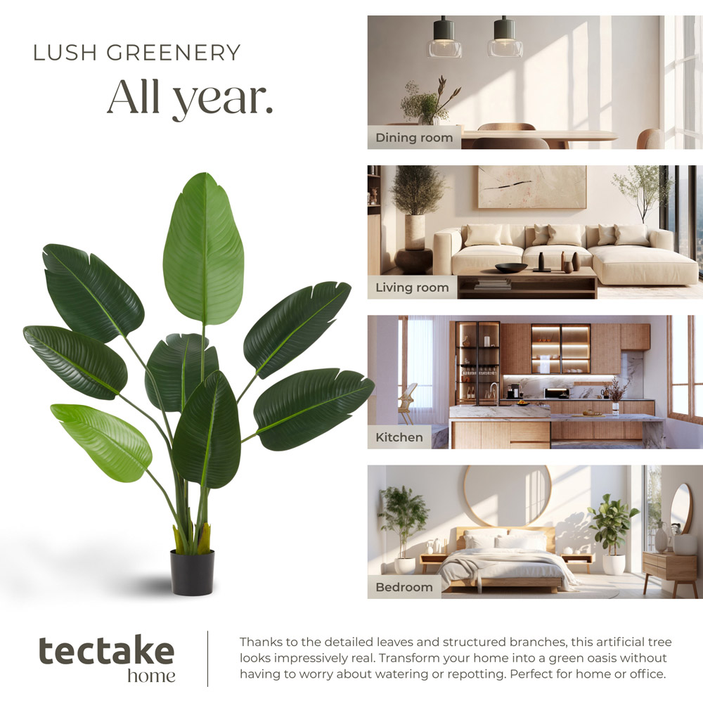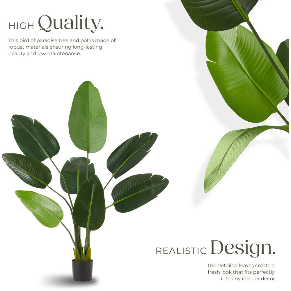 Elevate your living space with the Artificial Bird of Paradise Tree Tropic, standing at an impressive 120cm. This stunning addition is perfect for those looking to transform their home into a lush, green sanctuary without the hassle of maintenance. Crafted with meticulous attention to detail, the large, lifelike leaves are made from 100% eco-friendly PEVA plastic, ensuring an authentic and sustainable decor choice. Whether placed in the living room, hallway, or study, this artificial tree enhances any room with its vibrant presence. Plus, it comes in a robust plastic flower pot that provides both stability and durability, allowing you to enjoy this beautiful tree for years to come without the need for watering, fertilising, or worrying about it drying out.