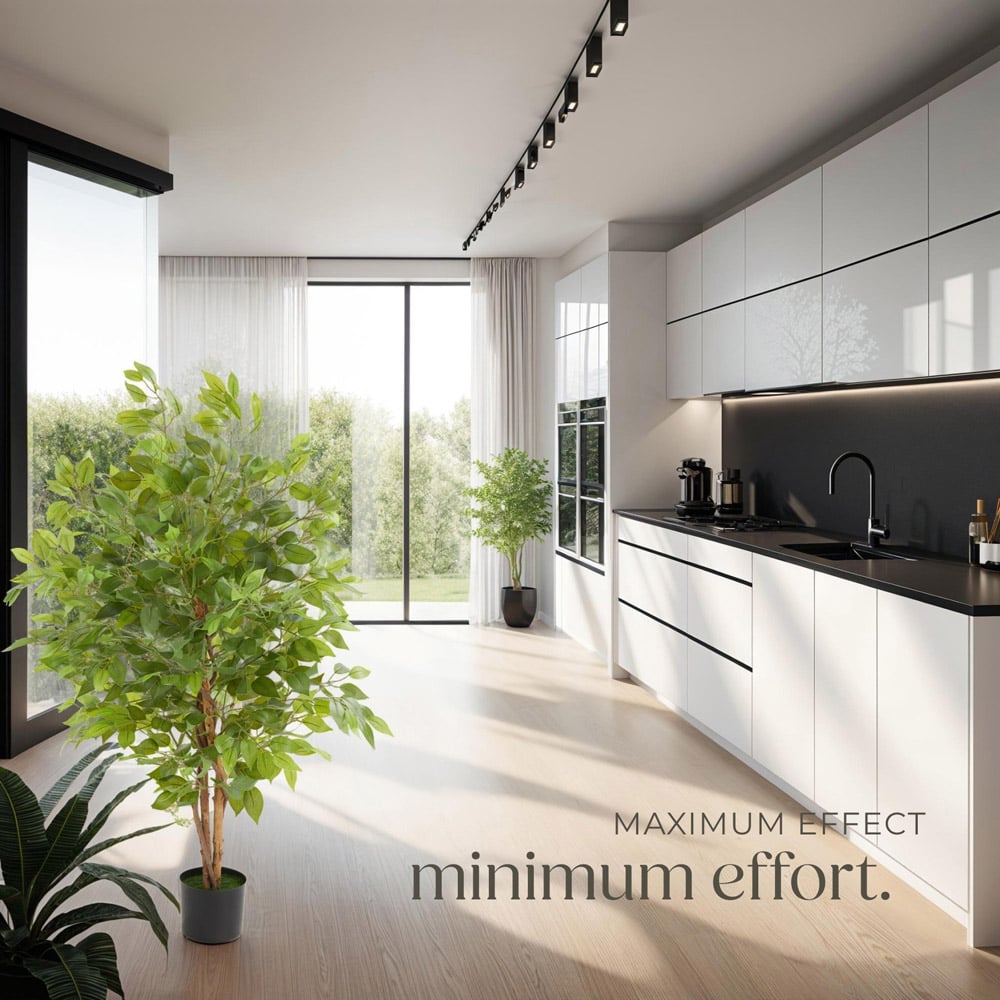 Bring the beauty of nature indoors effortlessly with the Artificial Plant - Ficus Tree, a stunning addition that combines lifelike detail and low-maintenance convenience. Standing at an impressive 120cm, this artificial Ficus tree, named Fida, features a dense volume of leaves and intricately twisted branches that mimic the natural growth patterns of a real tree. Its robust and realistic texture adds a vibrant touch to any room, enhancing the atmosphere without the hassle of regular upkeep. Delivered in a sturdy pot, it offers versatile placement options and remains fresh-looking year after year, making it an ideal choice for both home and office settings where a touch of green is desired without the commitment to care.