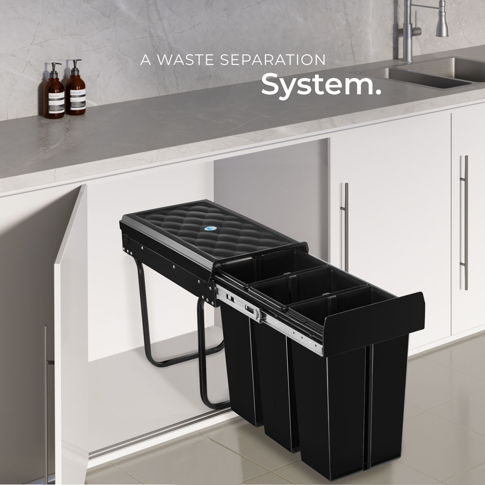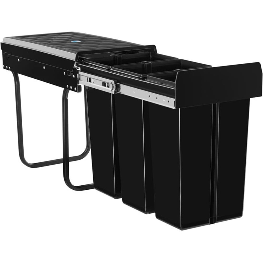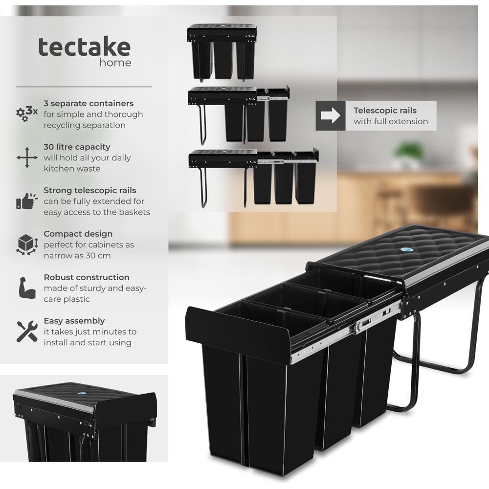 Tectake Ashlyn 3 Compartment Black Telescopic Kitchen Bin 30L