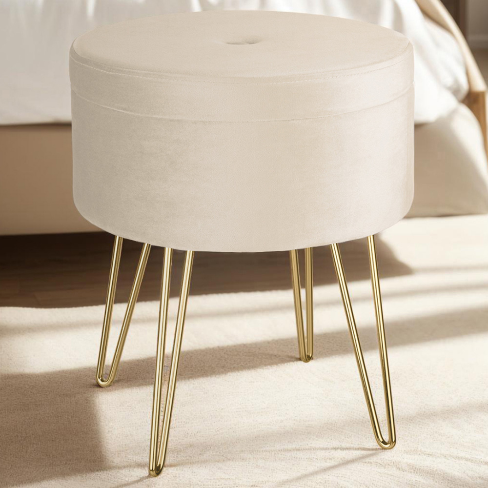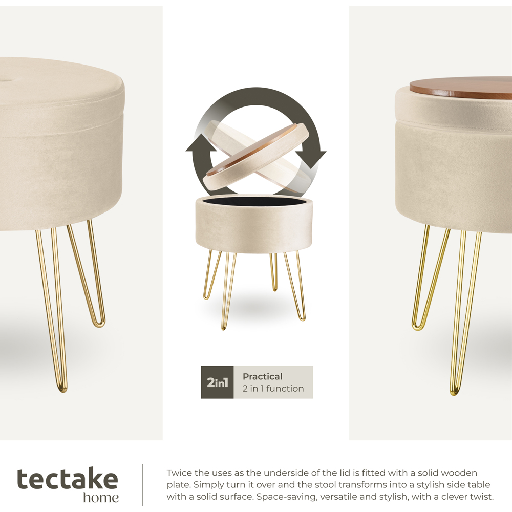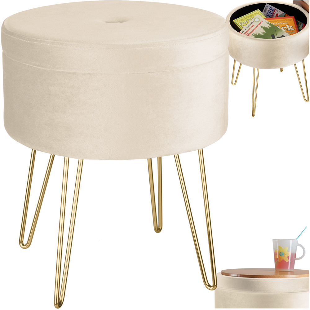 With the Ava stool from tectake, you are sure to get an eye-catching piece of furniture that combines several advantages. The stool's generous upholstery and velour surface make this neat chair exceptionally comfortable. Despite the chair's filigree look, the well-thought-out construction scores with practical features such as a high load capacity and an integrated storage compartment, ideal for storing everyday items. Thanks to its attractive appearance, the stylish round footstool can be used anywhere - whether in front of the dressing table in the bedroom or as additional seating space in the living room, as a step in the kitchen or even in a home bar. Help bring some extra practicality and style to your home with this Ava stool from tectake.