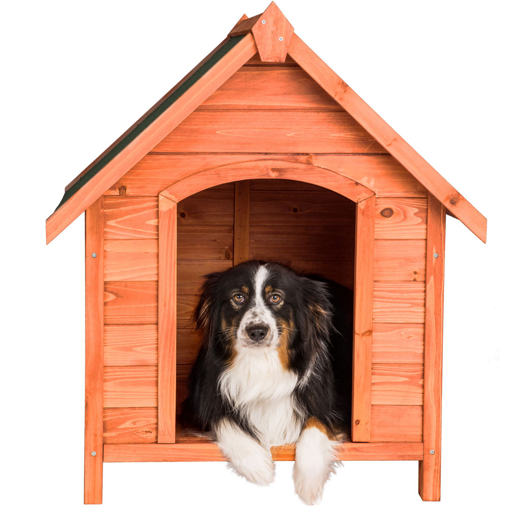 Create the ideal retreat for your four-legged friend with this great dog kennel from tectake. In the winter, when it's cold or on hot days in the summer, this hut will provide protection from the elements for your dog or puppy. Your pet will feel right at home in this small house and will get the private space he or she needs. The robust hut is made of varnished wood, and the pitched roof has a bitumen surface and is therefore weather-resistant. The bottom of the large wooden dog kennel is somewhat elevated, ensuring perfect air circulation and helping to provide protection against mud and pooling water. The kennel's roof can be opened up in order to allow for quick and easy cleaning of your dog's bedding and accessories. This dog kennel is a perfect retreat for your pet and will be a great addition to your garden.