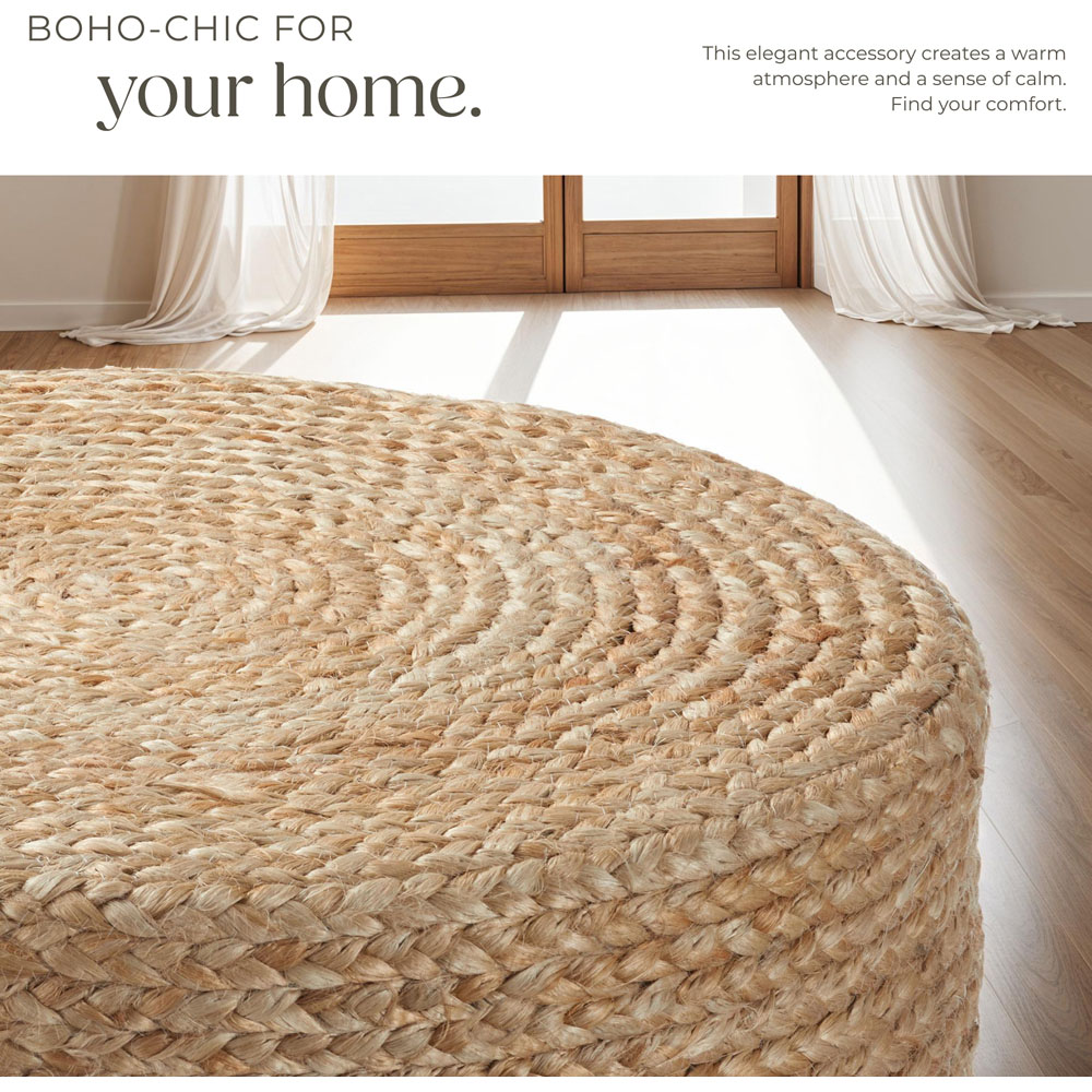 Bring a touch of bohemian charm into your living space with the Banno footstool, meticulously handcrafted from natural jute fibres. Its oval shape and boho style blend seamlessly into any decor, providing a cosy and sustainable option for your home. Perfect as a footrest, additional seating, or a decorative piece, this footstool is not only visually appealing but also built for durability and everyday use. Its robust construction and high-quality materials ensure it remains a central piece in your home for years to come. Easy to maintain and effortlessly stylish, the Banno footstool is an excellent choice for anyone looking to enhance their interior with a practical and unique item.