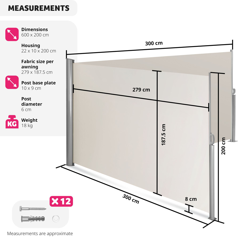 tectake Beige Double Sided Retractable Side Awning 2 x 6m