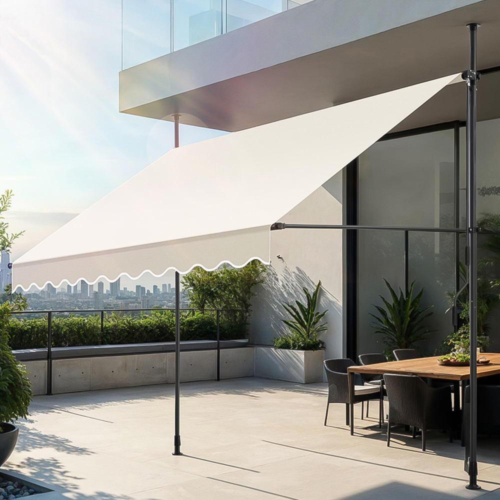 This manual awning provides protection from the sun and rain, making your patio, garden, or outdoor area more useful whatever the weather. Key features include a smooth-running hand crank, and UV and rain resistance. Plus, as it is constructed from powder-coated steel, aluminium, and polyester fabric, it is built to last. Compared with other awnings and similar products, installation of this home awning is done using a simple clamp system and requires no drilling into exterior walls. Enjoy the flexibility of a retractable patio canopy, which allows you to effortlessly bask in the sun's warmth or take shelter in the cool shade. Enhance your outdoor space with the retractable awning from tectake, perfect for a patio door, window, or as a roof extension. This easy-to-install awning requires no drilling and provides excellent sun protection with its durable fabric canopy. Adjustable for the ideal shade, it is perfect for windows or roofs or to add style and practicality to your outdoor area. Shop now for a versatile awning that brings comfort and protection.