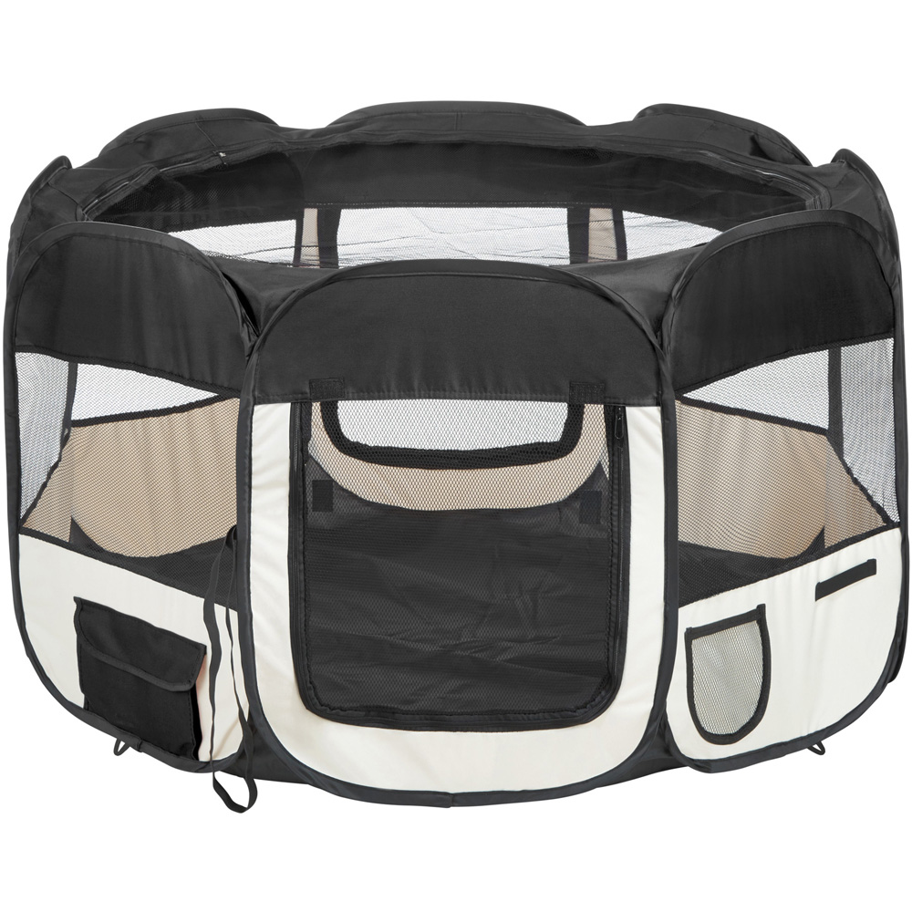 This 8-corner dog pet pen provides a great space for your puppies to play, or your dog to relax. The dog playpen is extremely well-suited for puppy training, as well as a place to sleep or play and explore without getting lost or causing mischief. Ideal at home or on the road, indoors or outdoors, for puppies or dogs. The pop-up playpen can be quickly erected and is lightweight whilst also being secure and stable thanks to the steel framework. The playpen isn't just for dogs - other small animals such as bunnies, guineas pigs or rats will feel right at home and love the freedom. Mesh sides allow you to keep an eye on your pets whilst also providing them with clean fresh air and good circulation. This dog pen is ideal for providing your pets a safe and secure space to play.