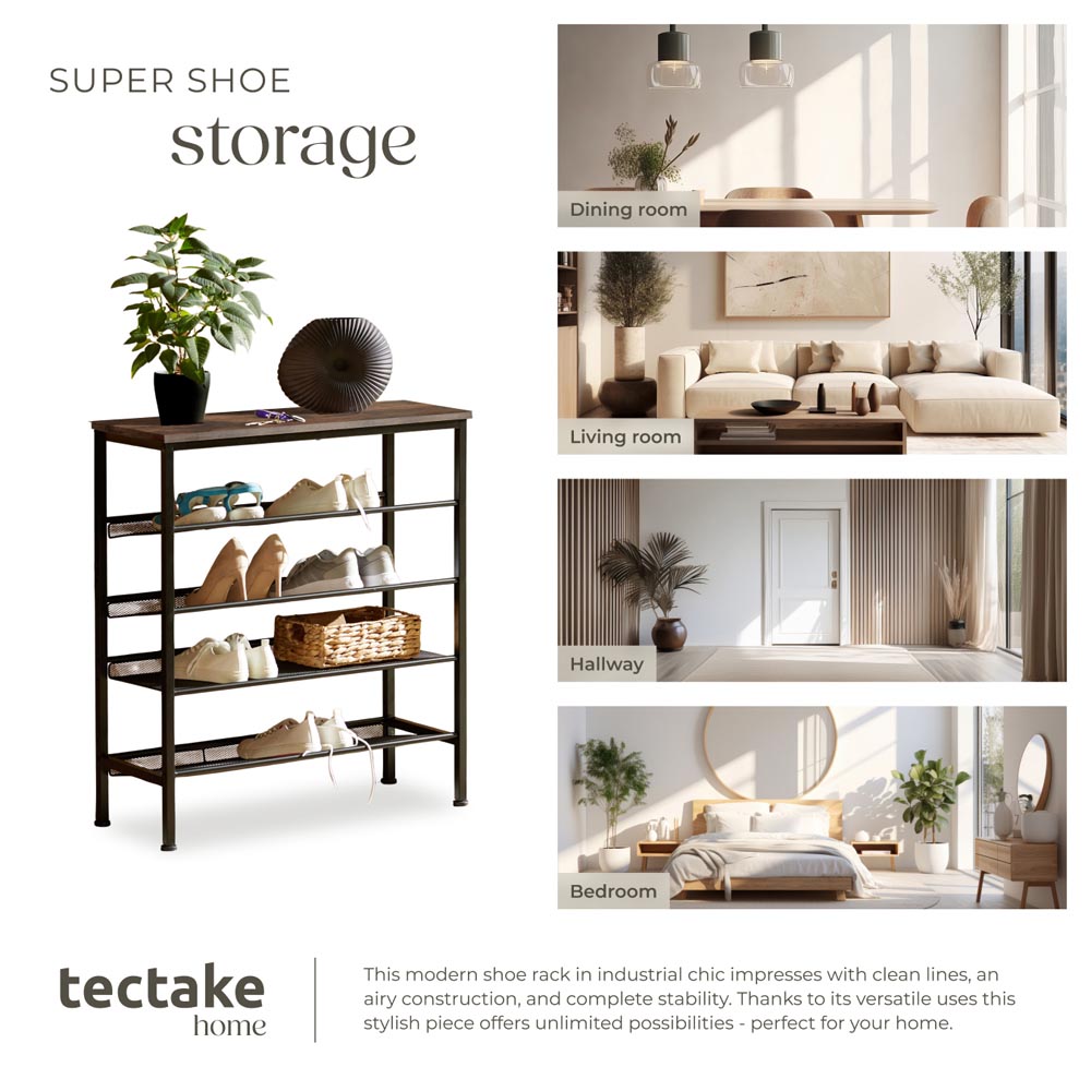 tectake Bournemouth 4 Grid Shelf Dark Wood Shoe Rack