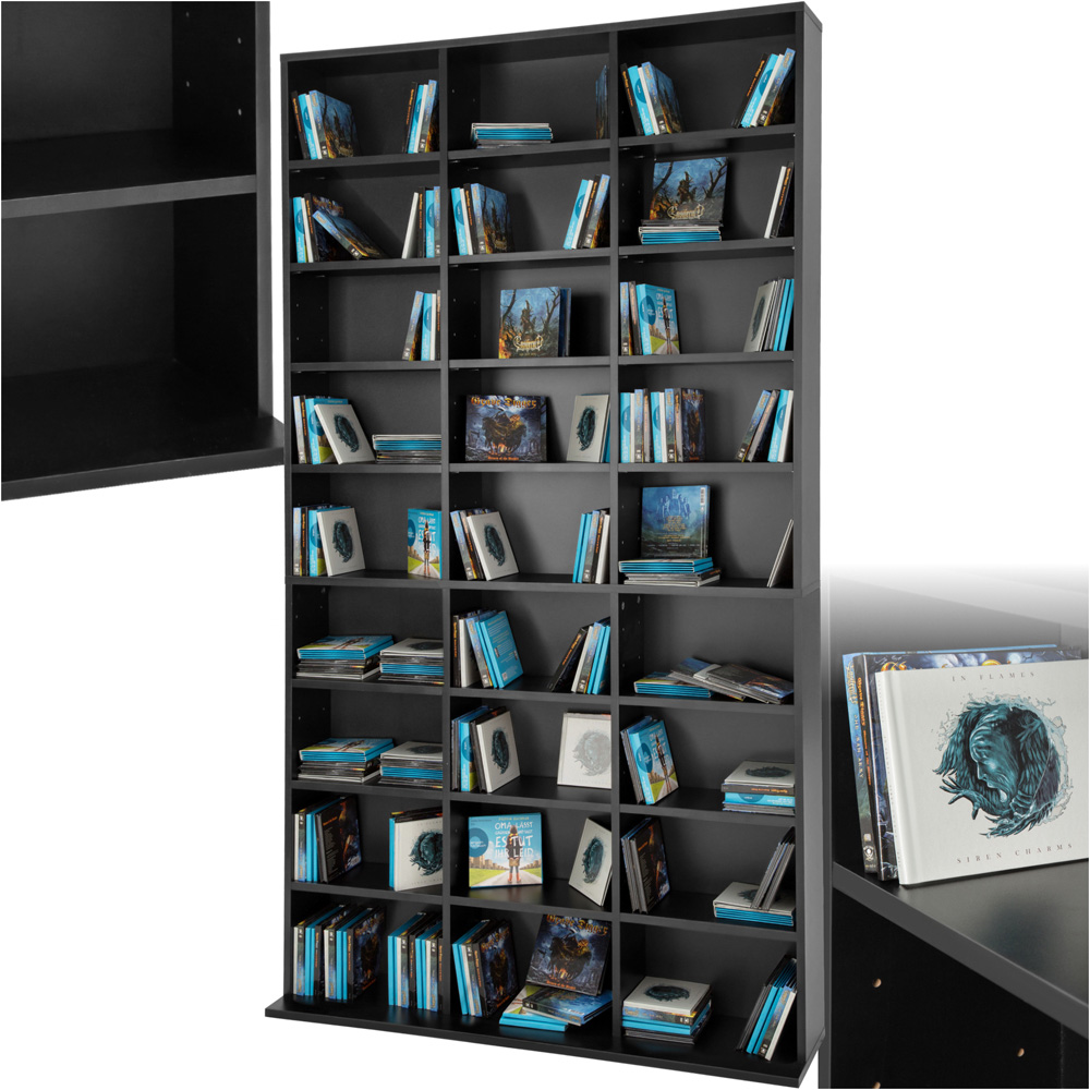 This multipurpose CD shelf unit is a practical and simple way to display your home's CDS, books or other products in your bedroom or living room. Key functions include adjustable shelves to fit different size media, open front to display your items, and space for a variety of products. Constructed of melamine coated MDF. Each bookshelf is 32cm wide by 15.3cm deep, while the height is adjustable in 6.5cm increments. The shelves are 17cm high, giving free space for around 9 books or 30 CDs per shelf (243 books and 810 CDs in the entire unit). If you stack the CDs vertically, a massive 1,080 can be stored in total. The smart design of this storage shelving will bring order to your living room or bedroom, and with its flat back, can be installed discretely against any wall. The efficient space-saving design provides maximum shelving storage in a minimum amount of wall space. So whether you use the furniture to display your CD, DVD or best book collection, the simple home media storage cabinet from tectake will be the furniture you need.