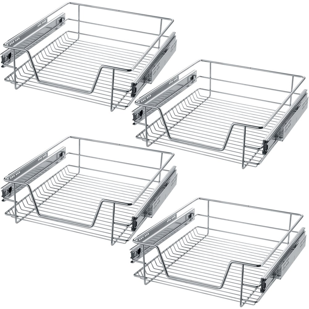 This versatile telescopic drawer with runners is the perfect addition to any kitchen, bathroom, or bedroom cabinet. It upgrades your furniture by adding functional storage space, making everyday life more convenient. With its smooth sliding mechanism, this drawer is easy to use and brings extra organisation to your home. Its classy chrome finish adds a stylish accent to any set of white, black or grey chest of drawers and is easy to clean, so it's great storage for ingredients in your kitchen, or in your bedroom for black socks and white underwear. You can add these drawers to any existing cabinet or just add a single drawer under your large white TV furniture to help keep your living room tidy. Perfect for keeping your room tidy and providing extra storage in your bedside tables or chest of drawers.