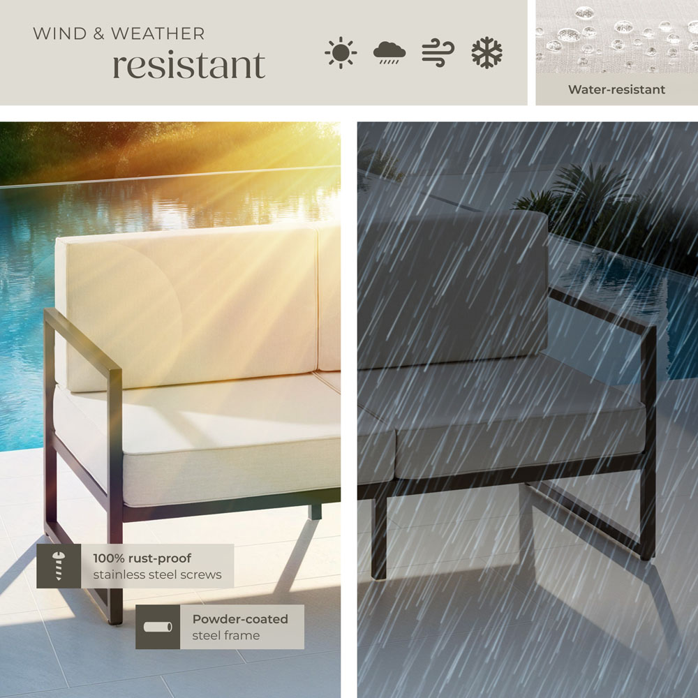 Transform your outdoor space into a cosy and inviting retreat with the Comosa garden lounge sofa from tectake. This two-seater sofa is perfect for relaxing with family and friends during those warm summer evenings. Whether placed on your terrace, balcony, or in your garden, it creates a welcoming atmosphere for all to enjoy. The extra-thick cushions offer exceptional comfort, encouraging you to lean back and unwind. Plus, the water-repellent and easy-care cushion covers are removable with a zip, making cleaning a breeze. With its rattan design and grey cushions, this set adds a modern yet timeless touch to any home or outdoor setting. The robust steel frames provide outstanding stability and load-bearing capacity, while the powder coating offers excellent protection against the elements. The height-adjustable, floor-friendly feet ensure the set remains stable on any surface, making it perfect for use on your patio, terrace, or in your garden. Whether you're looking for the ideal dining set or a comfortable corner lounge, these garden sofas and chairs will have you covered.