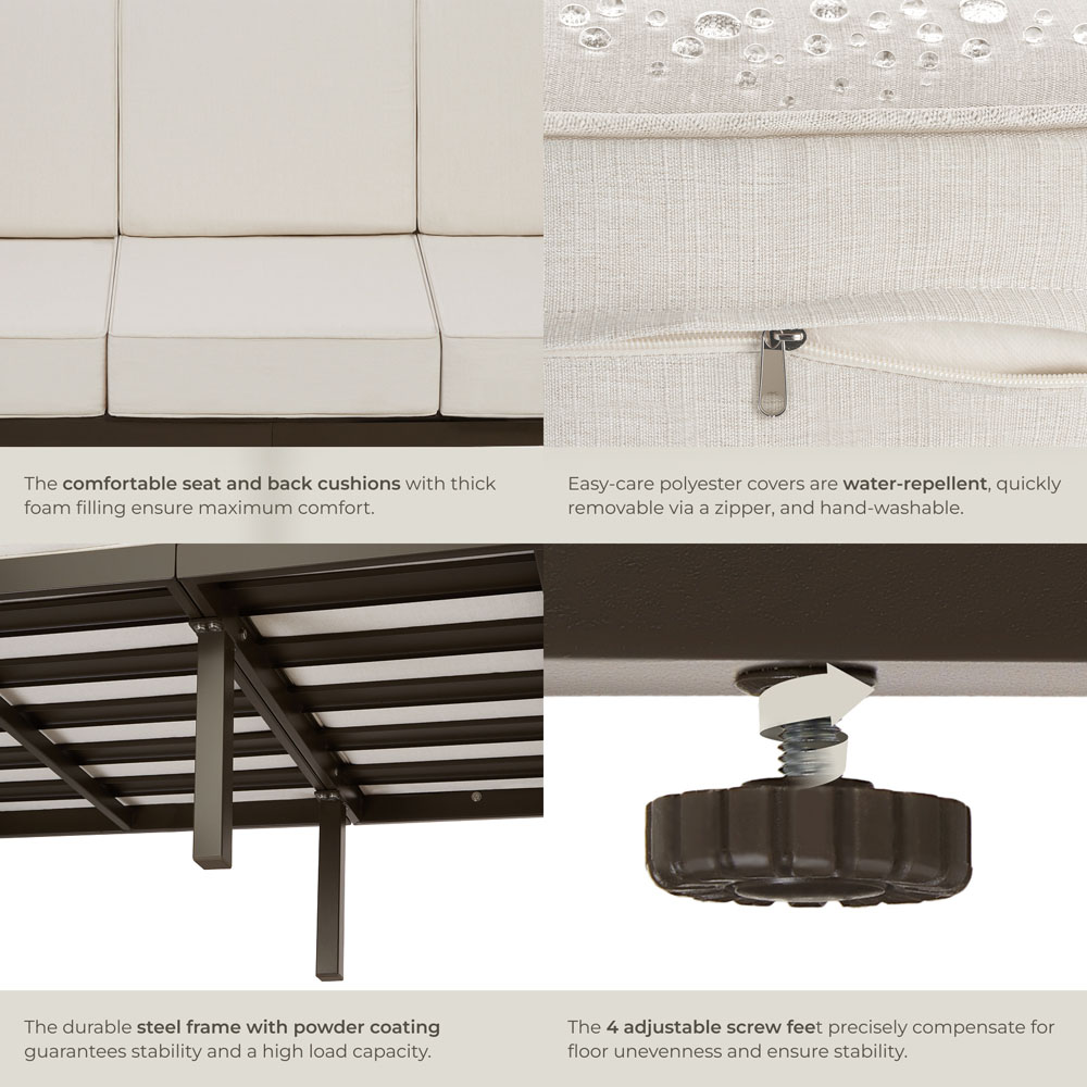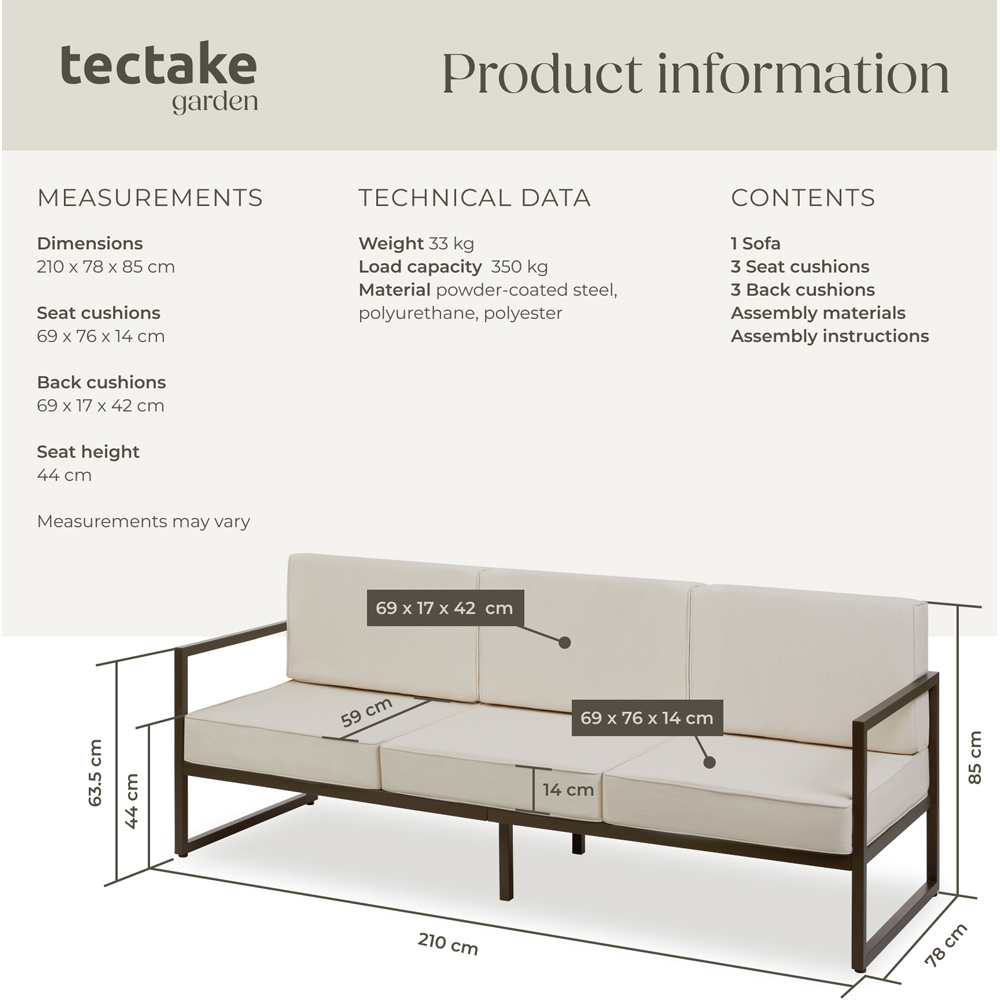 Transform your outdoor space into a cosy and inviting retreat with the Comosa garden lounge sofa from tectake. This stylish three-seater sofa is perfect for relaxing with family and friends during those warm summer evenings. Whether placed on your terrace, balcony, or in your garden, it creates a welcoming atmosphere for all to enjoy. The extra-thick cushions offer exceptional comfort, encouraging you to lean back and unwind. Plus, the water-repellent and easy-care cushion covers are removable with a zip, making cleaning a breeze. With its rattan design and grey cushions, this set adds a modern yet timeless touch to any home or outdoor setting. The robust steel frames provide outstanding stability and load-bearing capacity, while the powder coating offers excellent protection against the elements. The height-adjustable, floor-friendly feet ensure the set remains stable on any surface, making it perfect for use on your patio, terrace, or in your garden. Whether you're looking for the ideal dining set or a comfortable corner lounge, these garden sofas and chairs will have you covered. With new designs and fast delivery, it's the perfect addition to your outdoor furniture collection, helping you create the perfect oasis of comfort and style.