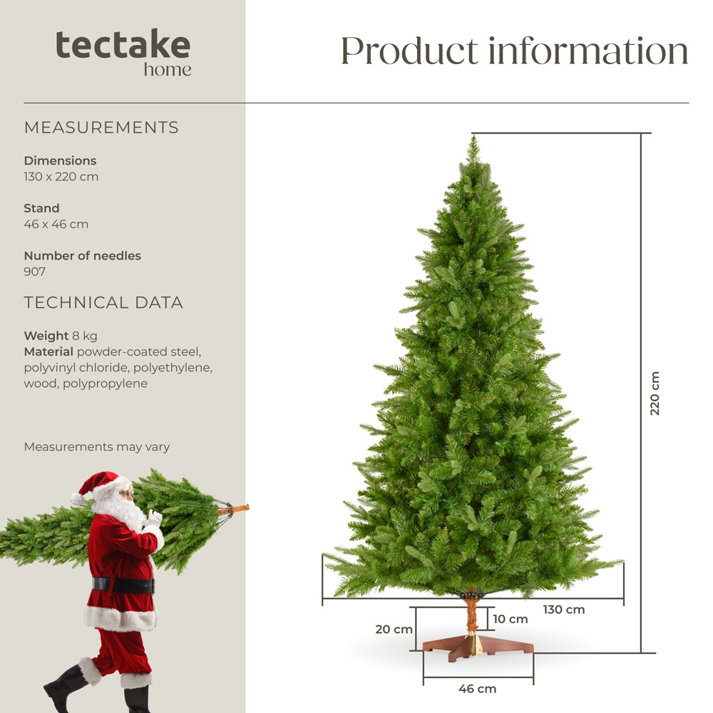 Bring festive cheer into your home with a realistic green artificial Christmas tree that captures the magic of the season in every detail. Crafted with injection moulded PVC needles, the branches closely mimic real fir, while the wooden-look trunk adds an authentic touch to your décor. Standing tall at 220cm, this large PVC Christmas tree with moulded needles is easy to assemble, requires little maintenance and can be reused year after year for a sustainable and worry-free holiday. Enjoy a cosy atmosphere and more time for decorating, knowing your tree will stay looking perfect throughout the celebrations.