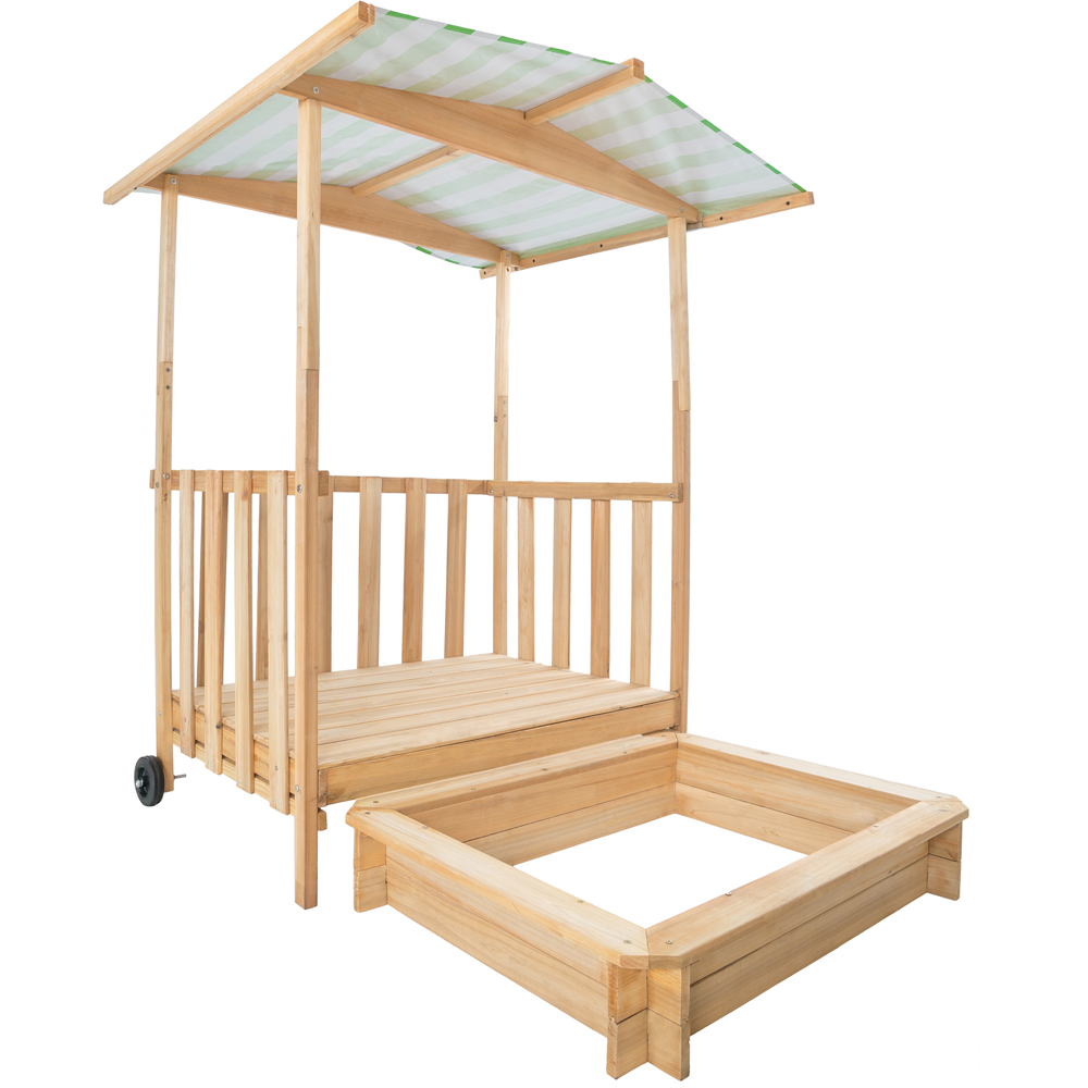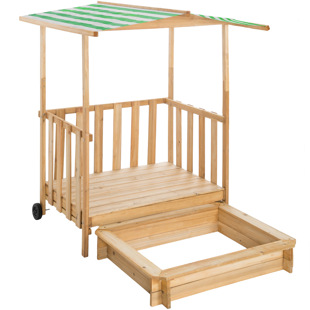 This beautiful sandpit by tectake is a perfect play area for your children. Equipped with a canopy, kids are protected against sunrays while playing, for example. Thanks to the transport wheels, the canopy can be pushed across the sandbox and thereby protect the sand from rain and animals. The decking and pit combination is perfectly suited for outdoor use in a garden or on a patio and will provide your children with a great place to play with toys and stimulate their imagination. Add this tectake sandpit to your home and provide your little tikes with hours of fun.