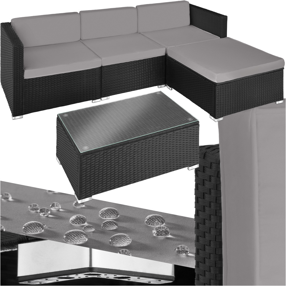 tectake Florence 4 Seater Black and Grey Rattan Garden Lounge Set