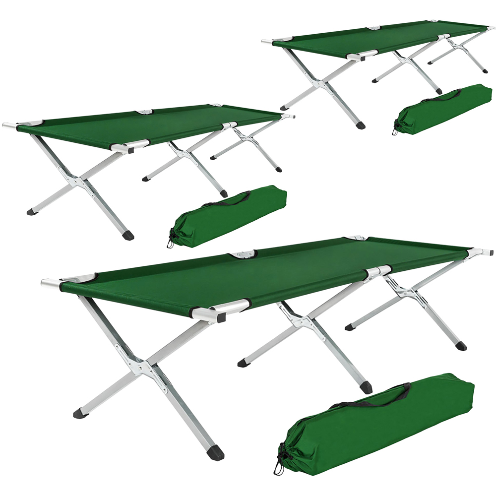 These camping beds are ideal for providing a comfortable sleeping position when out travelling thanks to their compact, disassembled size. Furthermore, the camping bed is lightweight and comes contained in a bag, making it easy and comfortable to carry. The camping bed is perfect for use at festivals, on a campsite or on a spontaneous hike in the great outdoors. The stable aluminium frame can be quickly and easily erected, making the cot both practical and reliable. These camp beds by tectake mean you can bring an important home comfort with you on your travels.