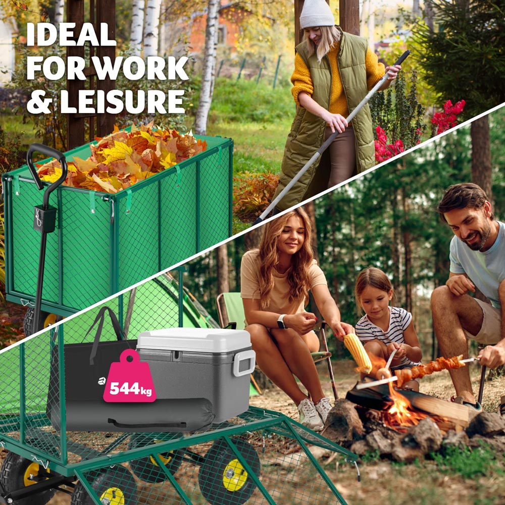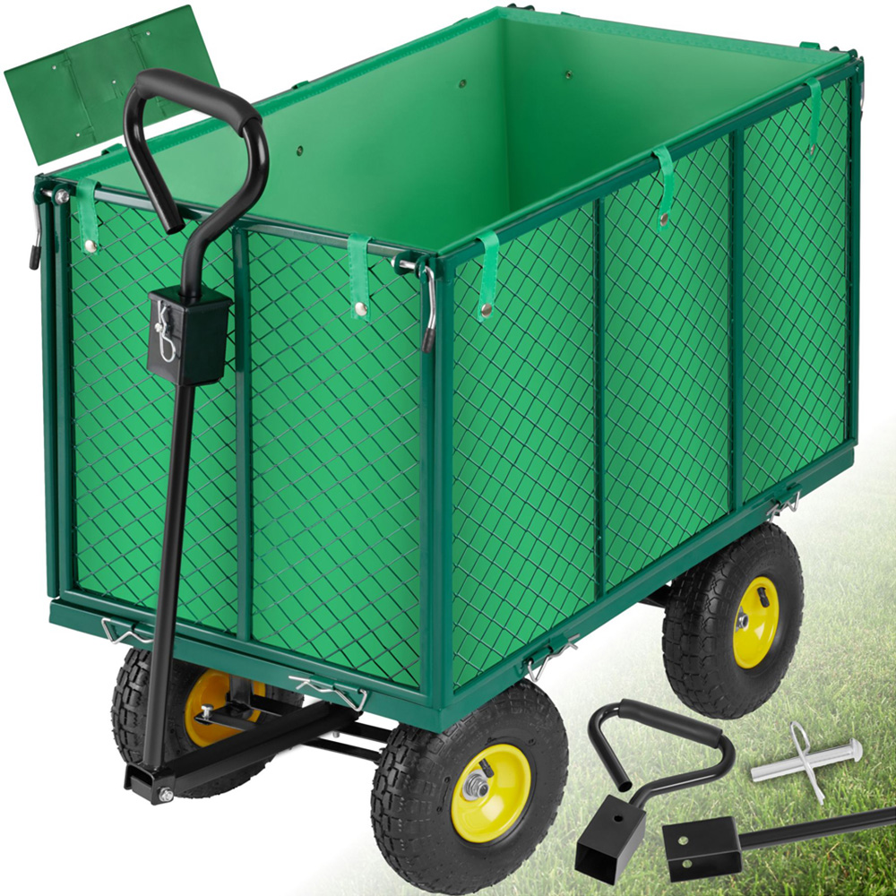 tectake Green Garden Trolley with Foldable Side Walls and Padded Handle 544kg