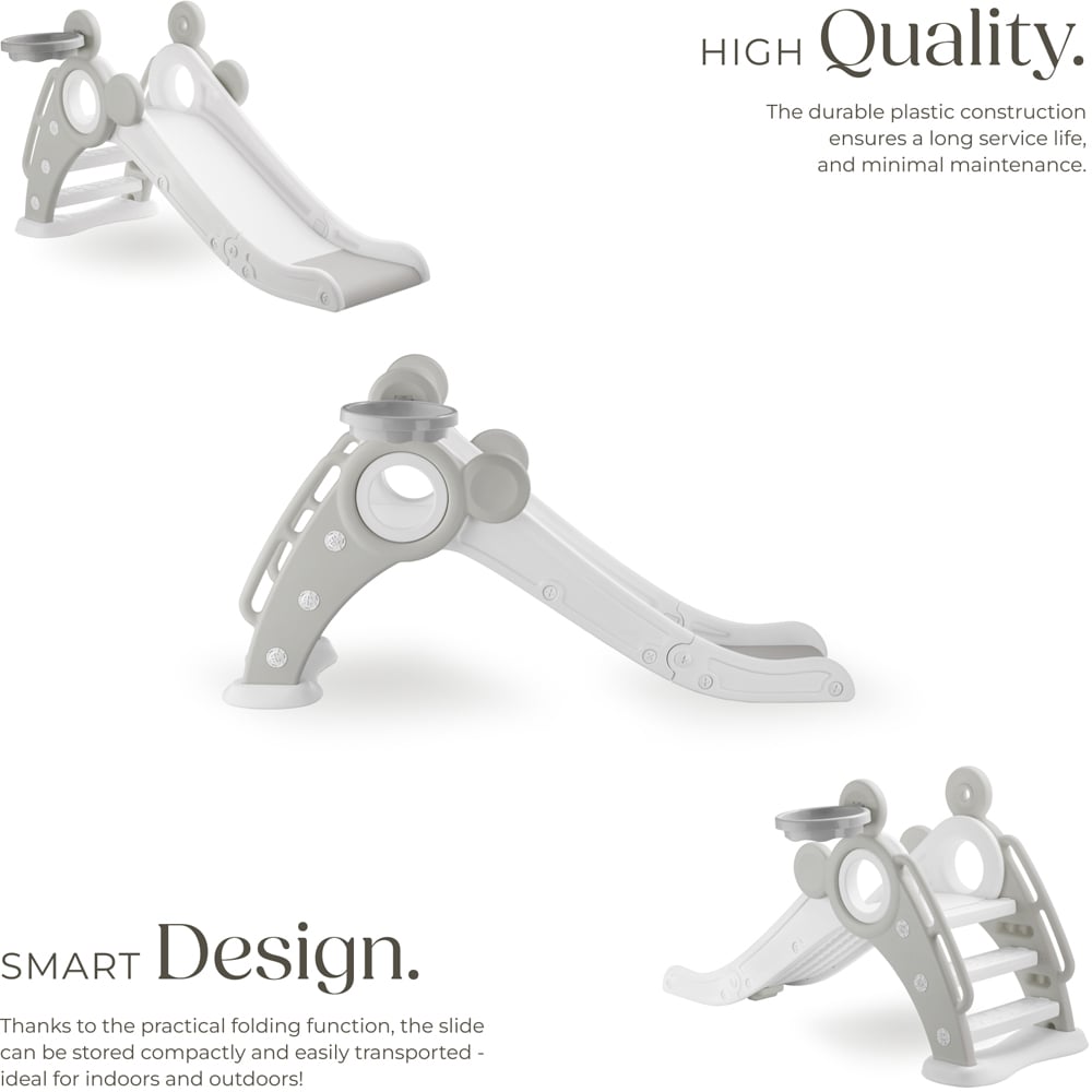 With the children's slide 'Joy' from tectake, play becomes an experience. The slide is the perfect toy for kids, offering indoor and outdoor fun - ideal for the garden, this set combines play and safety with a sturdy frame. Suitable for kids as young as 24 months, it's a great price for an all-in-one toy. Whether in the garden, at the playground or in the house – the slide guarantees hours of fun and ensures movement and joy. Safety is our top priority: That's why the slide features wide, non-slip steps and a stable handrail that makes climbing up a breeze - perfect for a first slide. Fully featured slides: The integrated basketball hoop provides additional variety making the slide a highlight in any child's room for years to come. The clever folding function is particularly practical as the entire slide frame can be easily and space-savingly stored. Whether you regularly play and use a slide outdoors or for occasional indoor use, the lightweight construction and quick assembly make these children's slides particularly flexible. Discover the Joy children's slide from tectake and give your little ones' an upgrade. The Joy slide is the perfect alternative to ordinary toys for kids, offering indoor and outdoor fun. Suitable for kids as young as 2 years, it's a great price for an all-in-one toy.