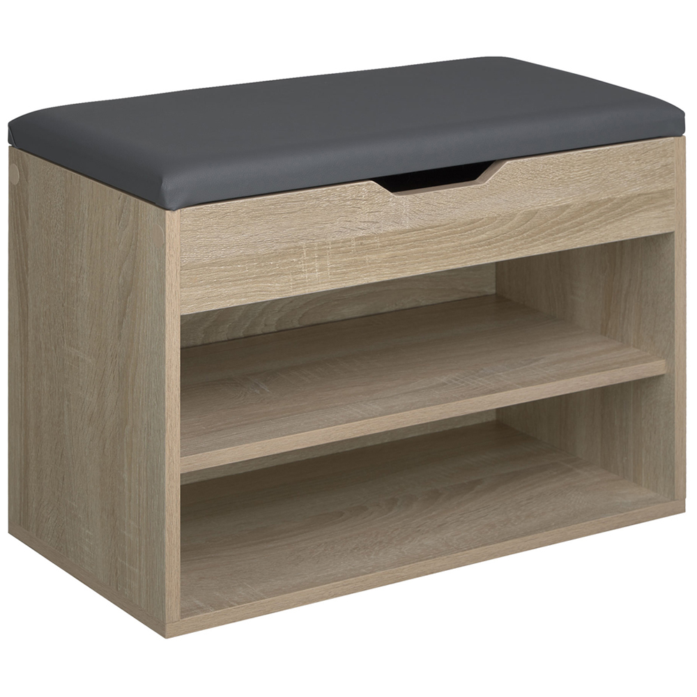 This versatile shoe storage bench from tectake will bring order to your hallway. Six pairs of shoes can be stored on the two open shelves of the modern shoe rack, while the top compartment with a hinged lid is ideal for storing scarves, gloves and hats. The cabinet features a padded seat which ensures comfort, whilst the colour complements the rest of the shelf unit perfectly. The robust MDF panels and melamine coating give this compact construction exceptional stability and the right look for combining with a range of different interior styles in your home. Perfect for any room in the house as extra seating or storage, be it the living room, hallway or kitchen, the new shoe storage bench from tectake. Keep your footwear organised and your space tidy with the Shoe Rack Jasmina. This versatile shoe storage bench combines functionality and style, featuring a cushioned seat for comfort and two shelves that can hold up to six pairs of shoes. Perfect for entryways, bedrooms, or hallways, this shoe storage cabinet also includes a hinged lid for extra hidden storage. Crafted from durable materials, this wooden shoe rack doubles as an ottoman storage bench, providing both seating and a practical storage unit. Its compact design makes it an excellent small shoe rack for tight spaces, while still offering plenty of room for your favourite footwear. Whether used as a shoe rack cabinet or a stylish addition to your bedroom storage, it's ideal for keeping shoes neat and accessible. Upgrade your home with this multi-functional shoe furniture, perfect for those seeking a shoe rack that blends practicality and elegance. Whether you're looking for a shoe cupboard, storage bench, or a shoe bench, the Jasmina is the ultimate solution for your shoe rack storage needs.