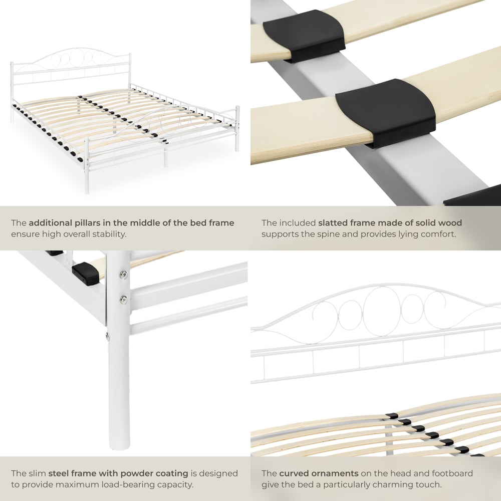 tectake King Size White Metal Bed Frame with Slatted Base