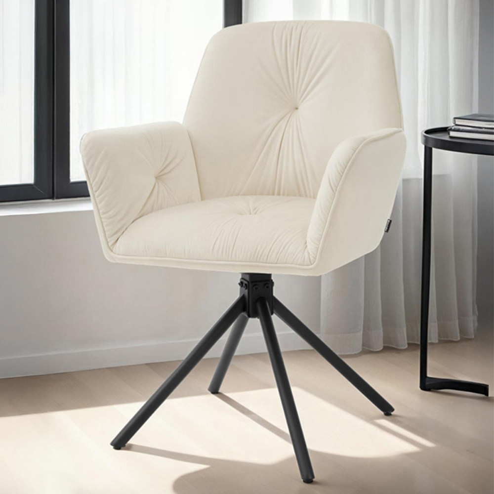 The swivel armchair Lenia from tectake combines elegance with functionality, making it a standout in any home. Perfect for the dining room, living room, or kitchen, its timeless design fits seamlessly into any interior. These chairs feature a spacious seat, high arm and backrests, and thick high-density foam padding, for exceptional comfort. The size of a chair with the comfort of a sofas, these chairs are perfect for the home or office. The velvet-look fabric feels silky soft, inviting you to relax on the single seater furniture. With angled, powder-coated steel legs for added style and stability, this dining chair also has height-adjustable plastic feet for maximum stability on any surface. Each material is chosen for maximum effect.
