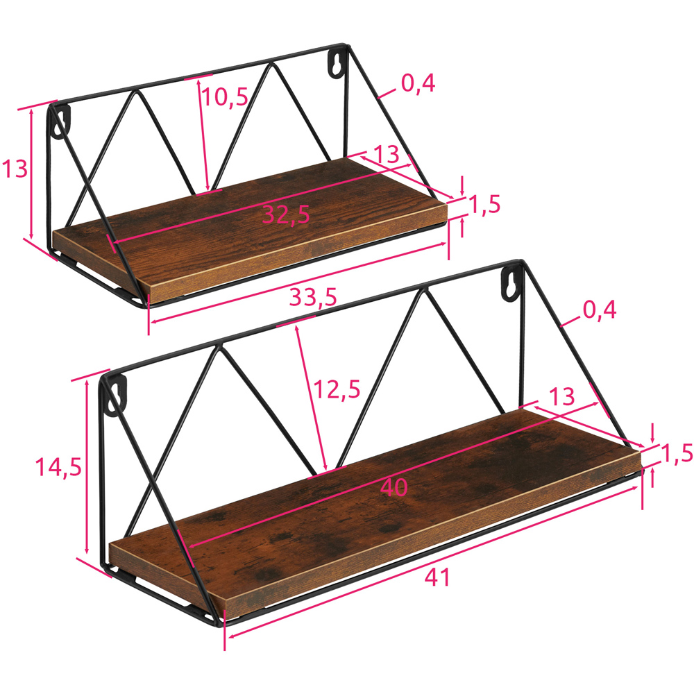 If you are looking for a clever and stylish use of space, you will find what you are looking for in the two-piece Rockport hanging shelf set from tectake. Characteristic of the typical industrial style are the powder-coated frames made of cool steel, which form a stylish contrast with the warm wood look of the stable chipboard. The natural grain, in combination with the simple design, radiates elegance. It makes your decoration stand out even more. The simple appearance of the hanging shelves makes it easy to integrate the rustic wall shelves into existing facilities, making them attractive all-rounders.