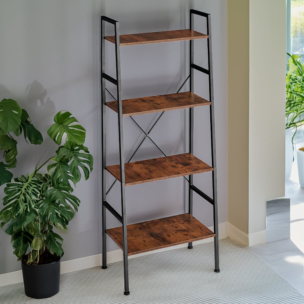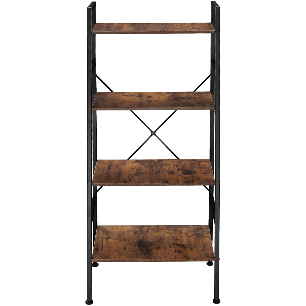 The four-tier Liverpool bookcase ladder shelf from tectake will add a rustic design and charming touch to your apartment or house. The sturdy steel frame and the resilient, solid wooden shelves form a successful combination of materials that are optically based on the trendy vintage look. Books, flowers, ornaments and other accessories and objects can be effectively staged on the levels that become narrower towards the top. Since the easy-care construction does not have a rear wall, it also makes an excellent display and trendy room divider with shelving. The Liverpool bookcase from tectake, an attractive, versatile option for all fans of the industrial style.