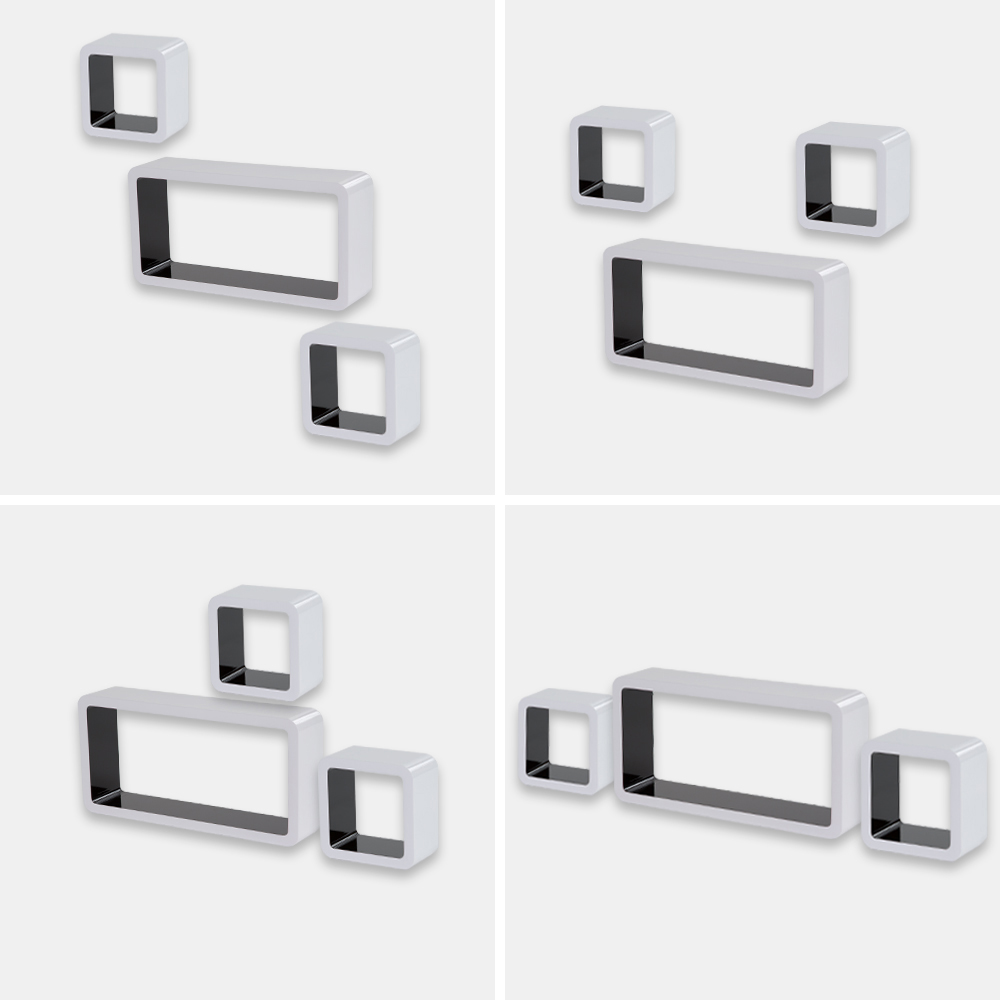 tectake Lotta 3 Piece Retro Cube Black and White Floating Shelves Set