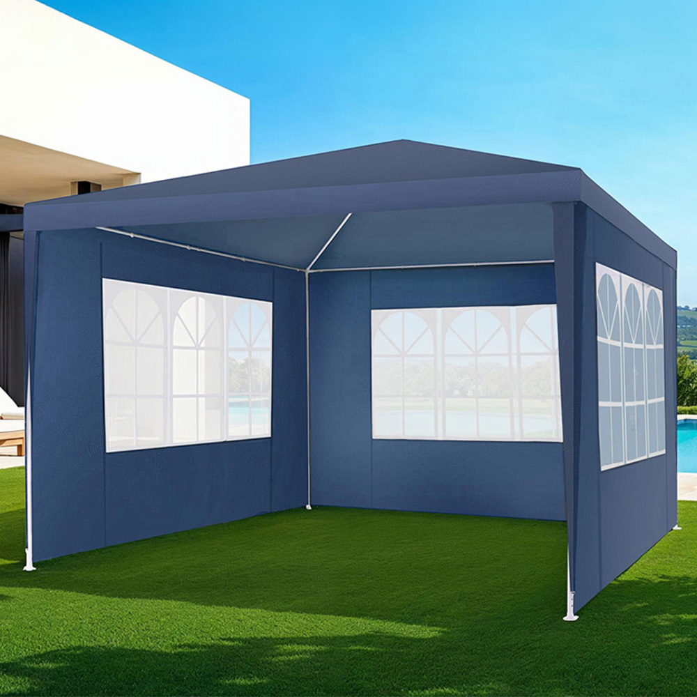 The Barinas gazebo from tectake blends functionality with a high-quality design, making it a perfect addition to your garden. The durable tarpaulin panels on the top and sides provide reliable protection against almost any weather conditions, while the powder-coated steel frame guarantees long-lasting use. This gazebo with a roof offers great flexibility with three removable side panels that can be easily attached using hook-and-loop fasteners, allowing you to customise it for any weather or moment of relaxation. The canopy provides shade, and the three side windows bring in light, creating a bright and welcoming space. The easy assembly process, using a simple plug-in system, ensures quick setup without the need for tools. The solid construction, complemented by stable legs and tension-resistant guy ropes, offers enhanced stability. Perfect for your garden, these gazebos ensure both privacy and comfort, whether you're hosting a garden party or enjoying a peaceful moment outdoors.