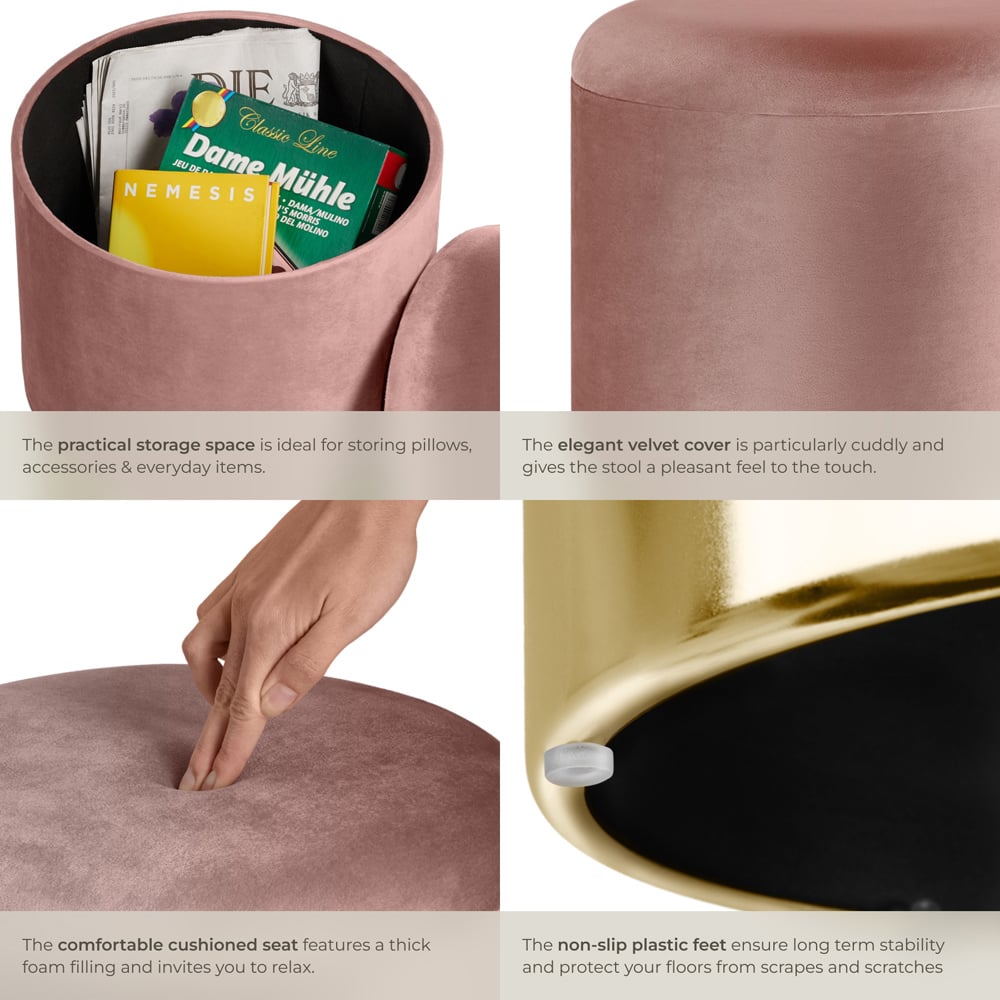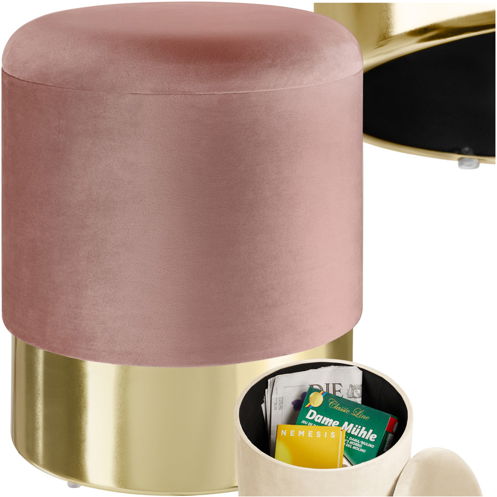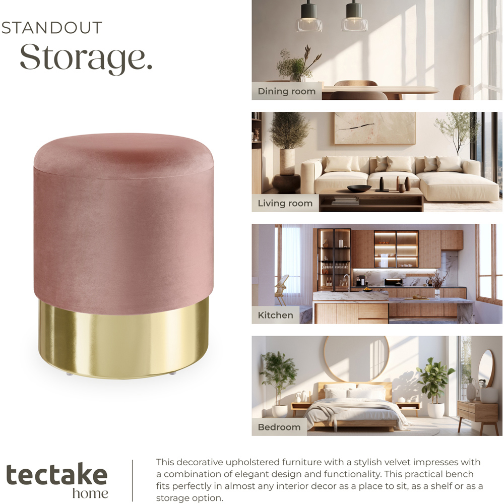 tectake Sarina Rose Velvet Look Padded Round Stool with Storage