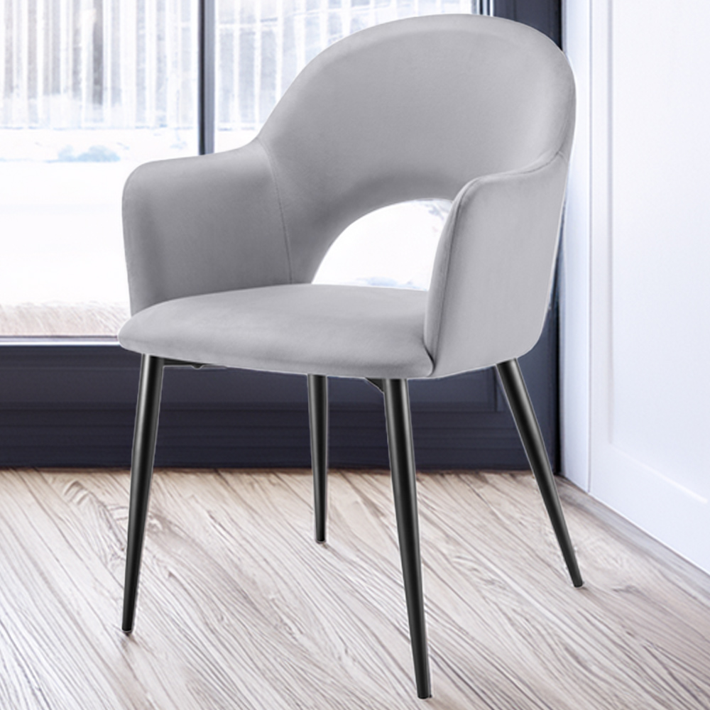 Comfort meets stylish design with the dining chairs by tectake. This set of chairs impresses with their stylish appearance and first-class comfort. The high, semi-circular backrests and the soft seat shells not only offer a visual highlight but also an ergonomic design that perfectly adapts to your body. Ideal for your dining room or living room: these armchairs add a touch of luxury to any room. Stylish seat shells with comfortable padding. The seat shells of the furniture pieces impress with an elegant combination of padded armrests and a gently curved backrest. The connection with the soft velvet cover not only gives the chairs a special elegance but also an extremely pleasant seating experience. The dining chair provides additional comfort via thick padding with a filling of high-density foam, inviting you to enjoy long, cosy hours around the dining table. Ergonomic design for maximum seating comfort. Thanks to the ergonomic design, the chairs adapt perfectly to your body shape and provide excellent support for your back and arms. Whether eating, working in the office or just relaxing: the stylish armchair always guarantees you a comfortable seating position. The steel legs of the club chairs are not only elegant and slim but also extremely stable and robust. With a load capacity of up to 120 kg, the chairs offer high resilience, while the floor-friendly, non-slip feet ensure 100% stability. No matter what surface, these fabric chairs stay firmly in place without damaging your floor. The assembly of the dining chair set is done in a few minutes. With just a few simple steps, the chairs are ready for use, so you can focus entirely on what matters. Enhance your home with this design highlight and enjoy the perfect combination of style, comfort and functionality. The dining chair Sachel set from tectake will give your living area a special touch.