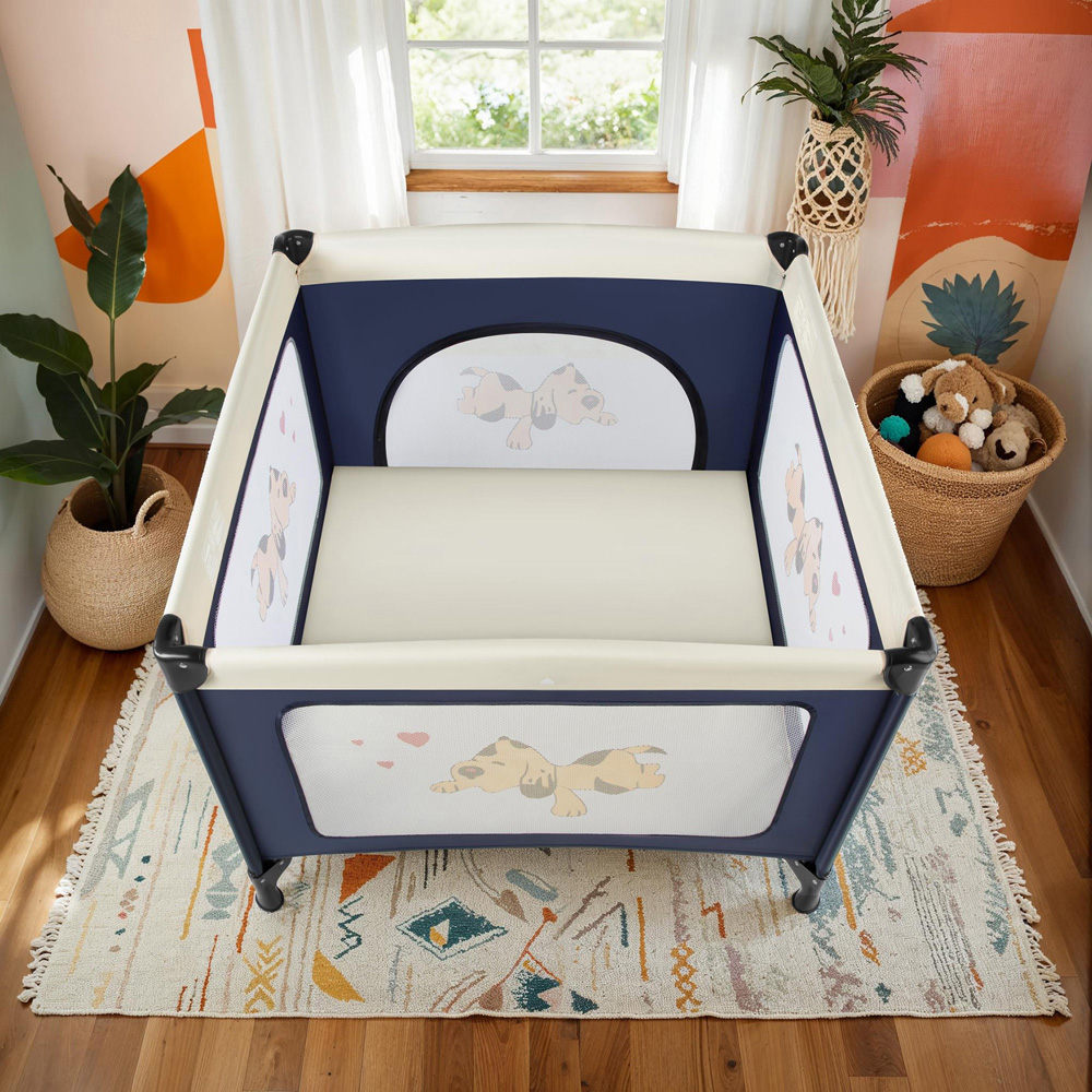 Ensure your baby's safety and comfort with the high-quality tectake playpen. Perfect for both home and travel, this playpen is collapsible for easy storage and portability. The breathable mesh sides allow you to keep an eye on your little one while they play or rest. Equipped with a padded sleep mat, it can double as a travel cot, offering both convenience and versatility. This baby playpen is the perfect alternative to a play mats and is a great place to store both plastic and furry toys when not in use. A baby pen makes your life easier as you're free to prepare dinner or other activities while your baby enjoys safe play time. Featuring a playful animal motif, this sturdy and safe playpen is ideal for toddlers and a great addition to your home or travel gear.
