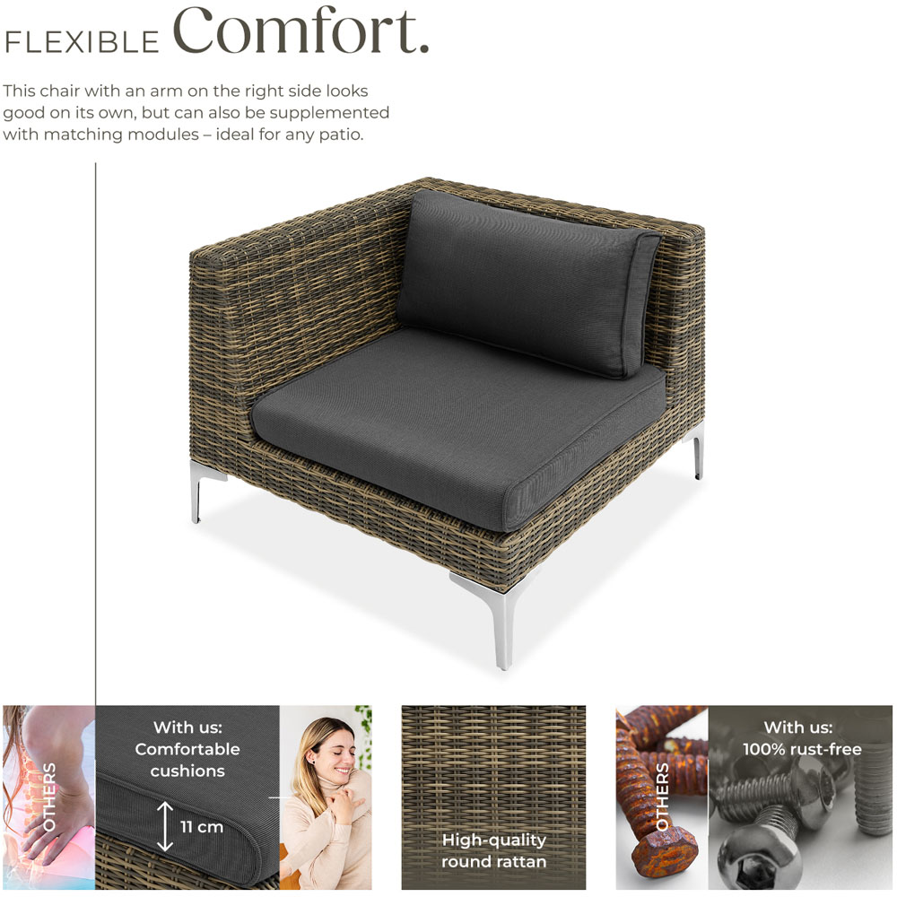 tectake Villanova Rattan Right Corner Garden Chair with Cushion