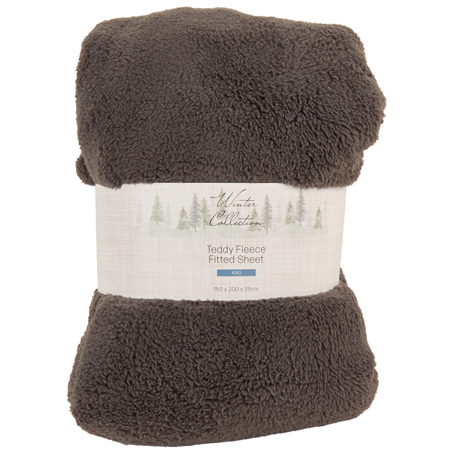 Teddy Fleece Fitted Sheet Charcoal Db - Charcoal / King