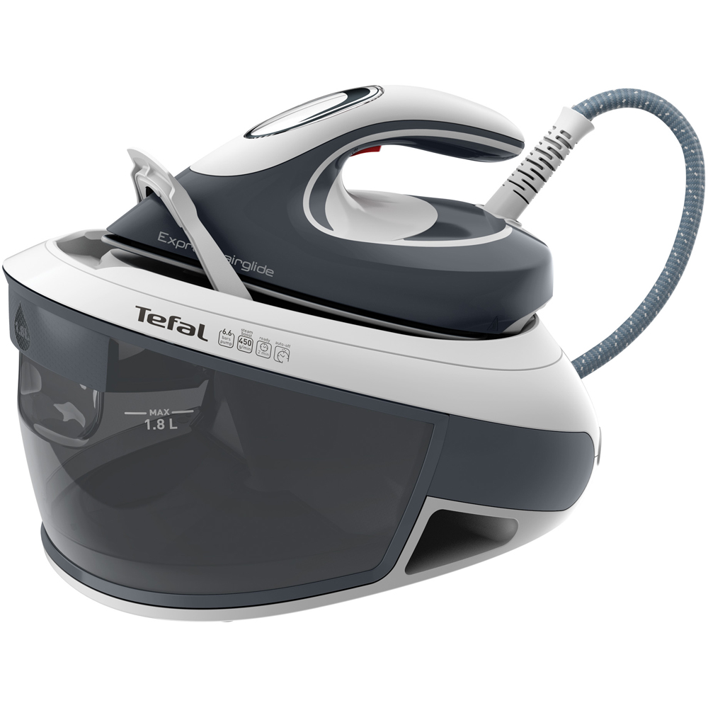 Make ironing easy and effortless with the Tefal Express Airglide Steam Generator Iron 2800W. With a generous 6.6 bar pressure producing a continuous steam output of 120g/min – up to three times more than a traditional steam iron – this iron delivers perfect results. Also, it ensures tough creases don’t stand a chance against its impressive 450g boost. The Scale Draining System makes it easy to keep this iron in top condition and maintain long-lasting steam performance. When the anti-scale button flashes, simply fill the water tank and press the button for 3 seconds to flush out the scale. This steam generator iron comes preset to the optimal combination of temperature and steam to suit all fabric types. Iron everything from denim to silk, with no settings, no worries, and no burn risk – guaranteed. Plus, the clever Eco Mode gives you the same speedy results using 20% less energy.