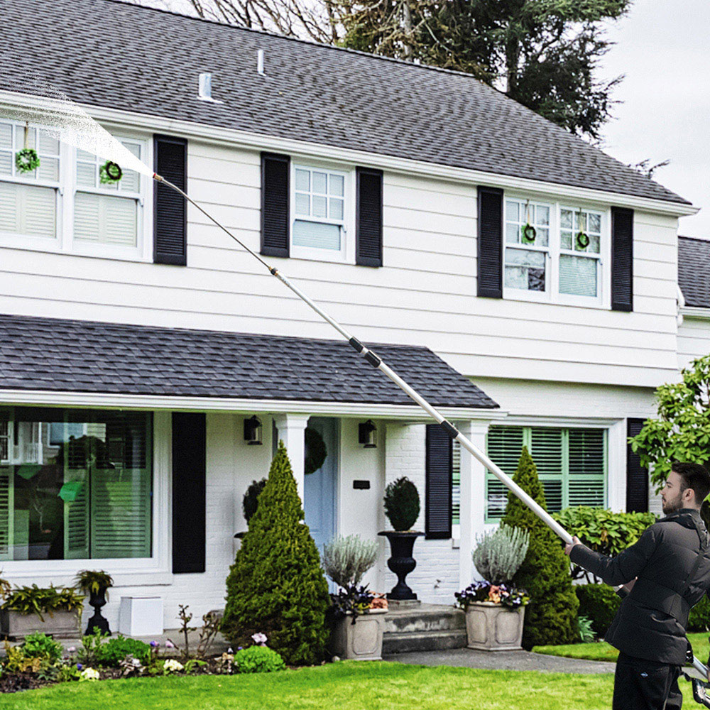 Cleaning high and far away spaces in a safe way with this Costway Telescoping Wand for Pressure Washers. It allows you to stand on the sound ground and extend the wand to reach the high walls, eaves and gutters. Besides, the 15-degree extension wand and gutter cleaner attachment can well satisfy your different cleaning needs. Moreover, the five spray nozzles can be attached to change the spray angles for washing various surfaces, such as bricks, concrete, wood or glass. To deal with concealed spaces, such as the vehicle's undercarriage, you can use the pivoting coupler in three angles. The aluminium alloy extension wand itself is lightweight. Together with the dual-shoulder support harness, it is effortless to carry around. This set should be used with high-pressure hoses and pressure washers. And two adapters (M22-14MM and M22-15MM) are kindly provided for great compatibility. Ideal to connect with a 4000 PSI gas-powered or electric pressure washer, the high-pressure cleaner attachment works well in cleaning gutters, walls, driveways, fences and even vehicles.
