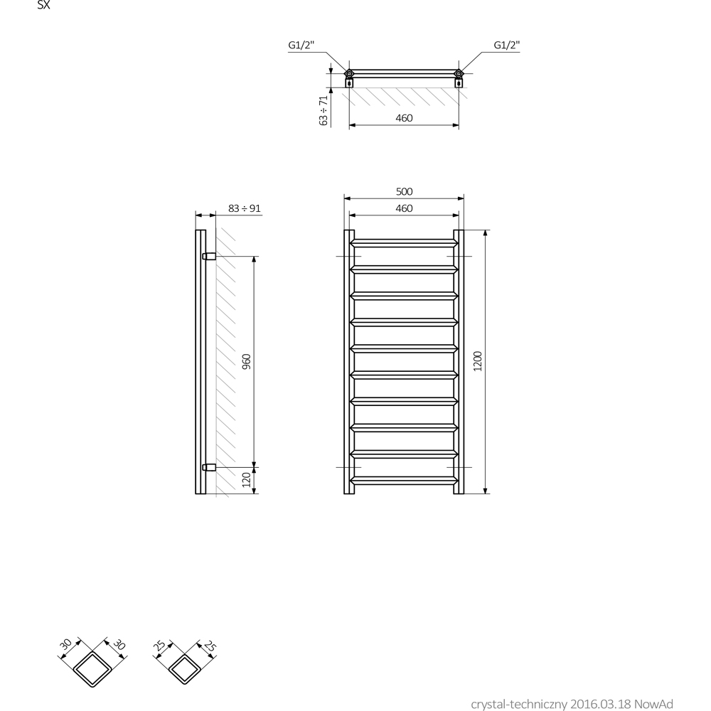 Terma Crystal Modern Grey Electric Towel Rail 1200 x 500mm