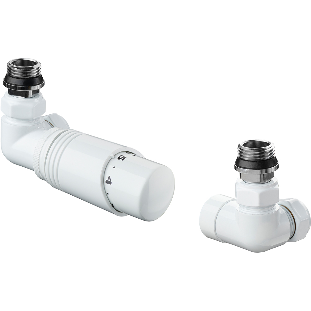 Terma Cylindrical White 3-Axis Thermostatic Radiator Valve and Lockshield Set