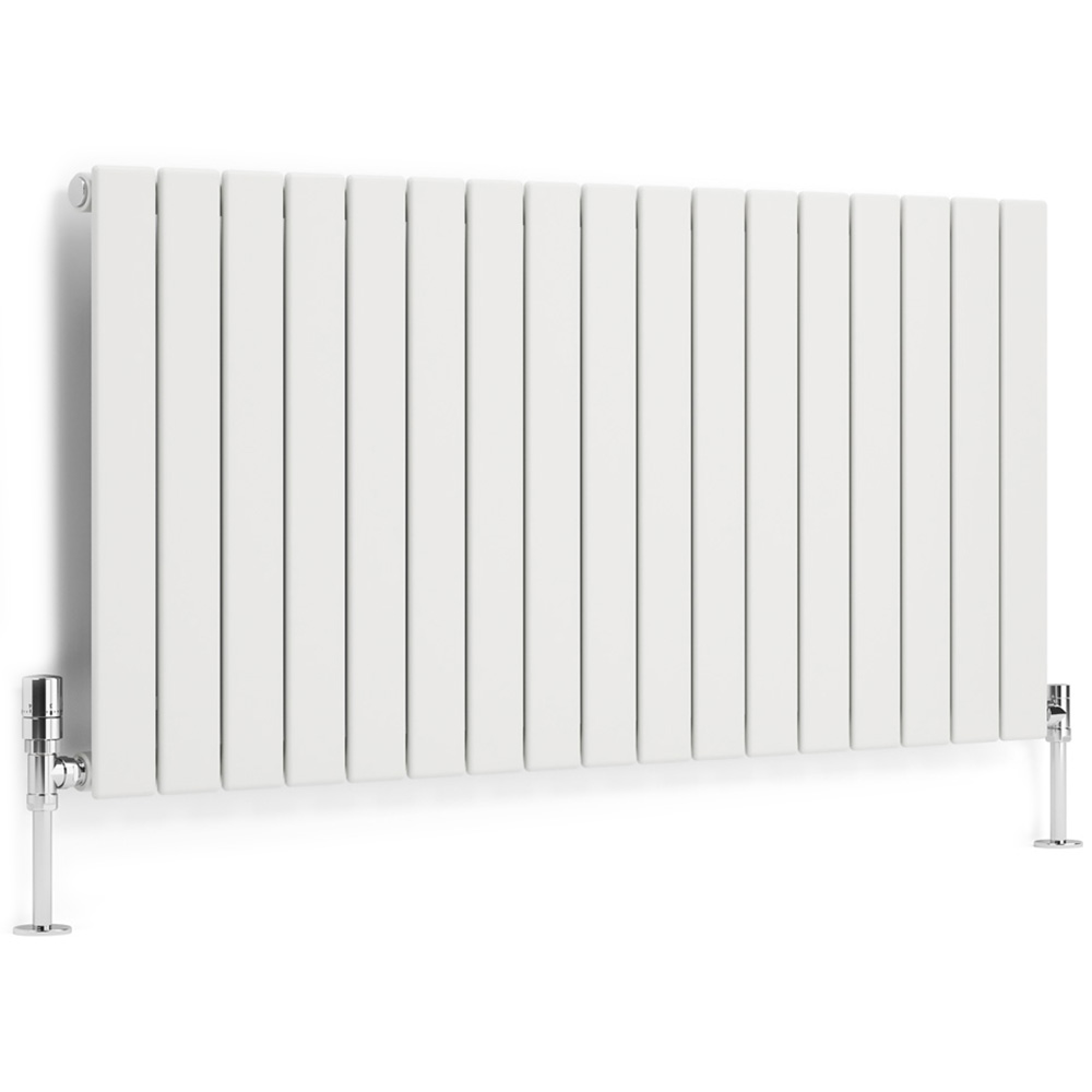 Forte is a flat bar range of designer radiators available in both single or double panel variants; each bar is 70mm wide with a small gap which creates a very seamless looking design set against the wall. The Forte single panel (V10) model is manufactured from a single layer of flat steel profiles mounted on round rear collectors, with a very shallow projection of just 73 mm including fixings, meaning this model is well suited to spaces where the overall projection is limited. Note: Terma also offer a Forte double panel (V20) model which has a deeper projection of 93mm. This white (RAL 9016) colour has a silk, smooth texture. Terma offers a 150x50mm colour chip of this finish should you wish to see the colour prior to purchase. The Forte range have the unique feature that they can be installed either... vertically with the bars running up and down (valves connected on the sides)... or they can be installed horizontally with the bars running left to right (valves connected on the undersides). The same physical model you buy can be installed either way up giving maximum flexibility dependant on your space requirements. See the images for how the radiators look each way up as they can give a very different looking design as you rotate each model and we show images of these fitted both ways for every size. Forte is supplied with a universal bracket which allows the radiator to be installed either way up, full instructions supplied. As you rotate the radiator either way up it changes the view you will have of the brackets from the side of the radiator. With the bars running vertically the brackets are on show, but with the bars running horizontally the brackets are fully concealed from view. See the images for this difference. Forte is pre fitted with an internal diverter (baffle) which is a barrier to aid the flow of water up and over inside the radiator to ensure even heat distribution across all bars. If being installed with the bars running vertically this should be left in place. If this is installed with the bars running horizontally this need to be tapped out (full instructions supplied for the plumber).