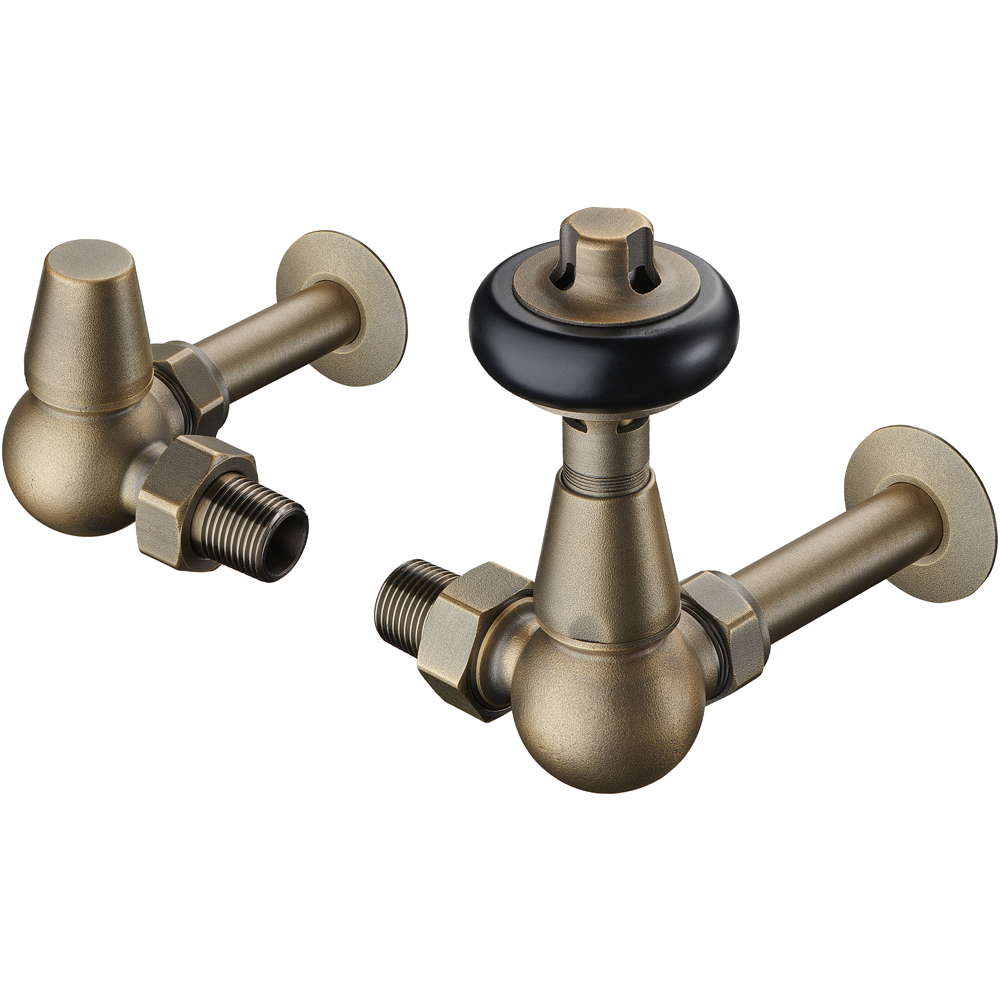 Pipe masking set - to cover the exit point for your valves from the wall and into the back of your radiator. Gives the perfect finish with a collars to sit around the pipes where they come out of the wall and pipes to sleeve your cooper pipes within. Match these with the CYLINDRICAL or TRADITIONAL valves ranges from Terma. Pipes are 130mm in Length, 18mm in diameter (16.5mm internal diameter) so will sleeve over 15, 10 or 8 mm diameter copper pipework. Collars are 44mm Diameter. Old English Brass in colour.