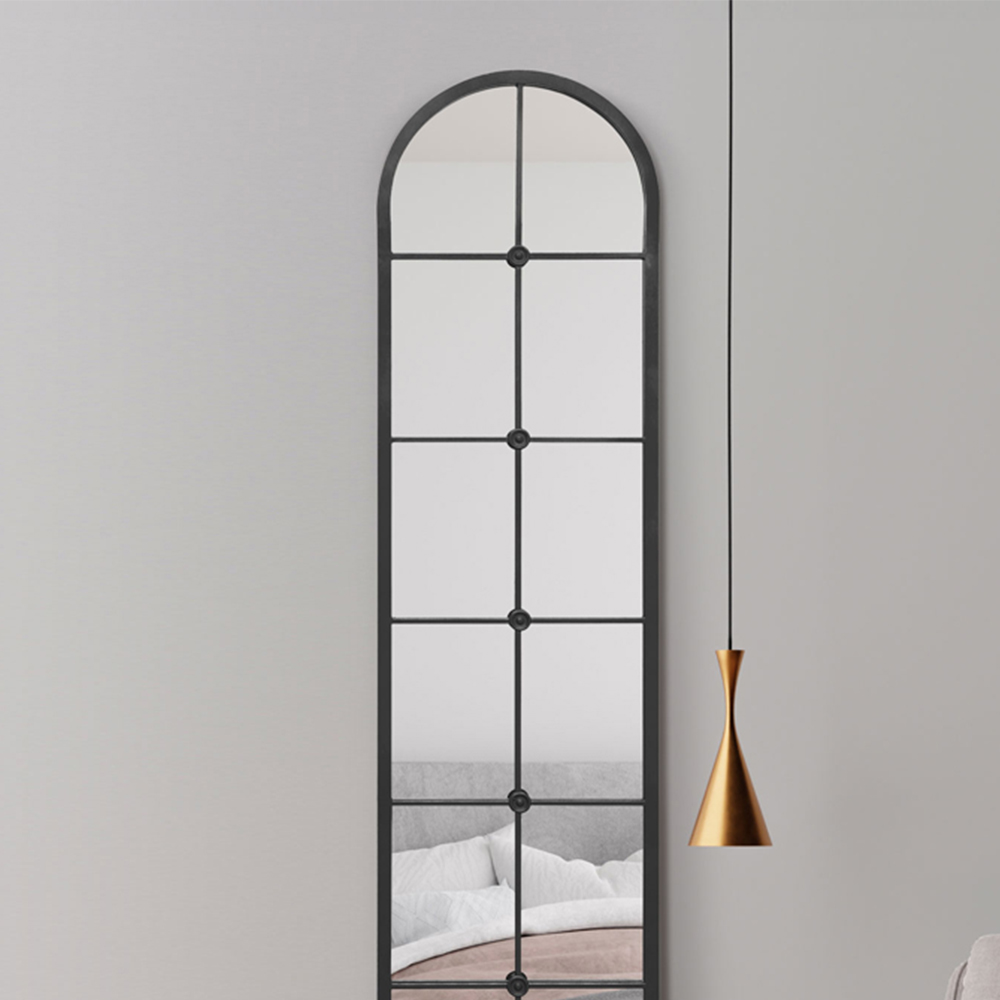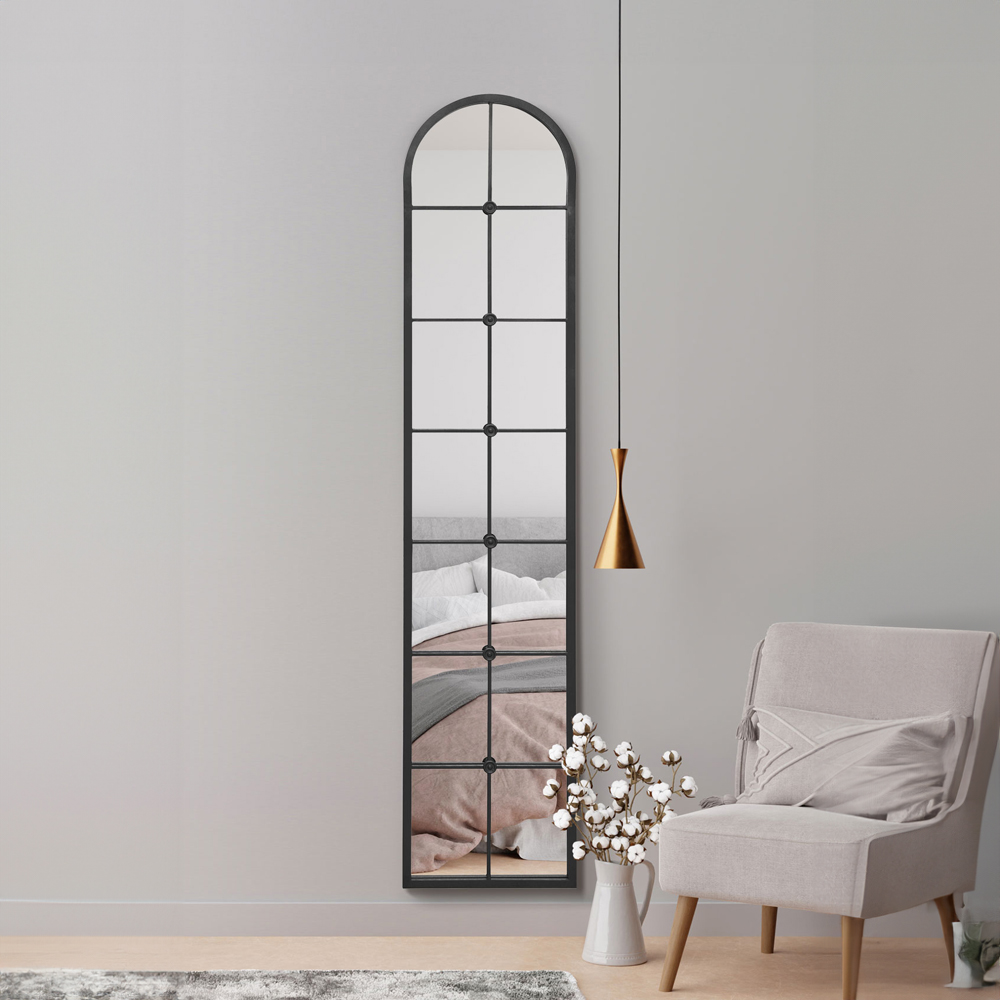 The Arcus Black Arched Metal Leaner Wall Mirror 190 x 40cm