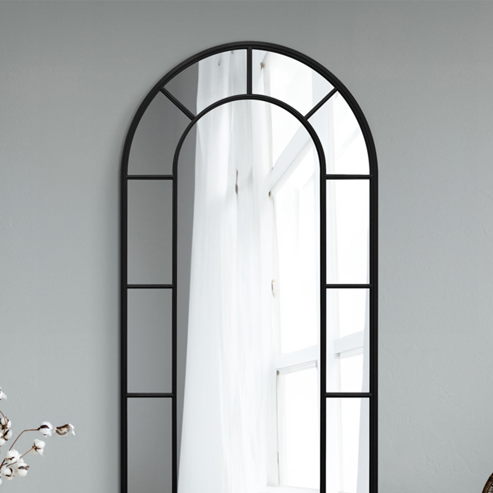 The Arcus Black Arched Metal Leaner Wall Mirror 190 x 85cm