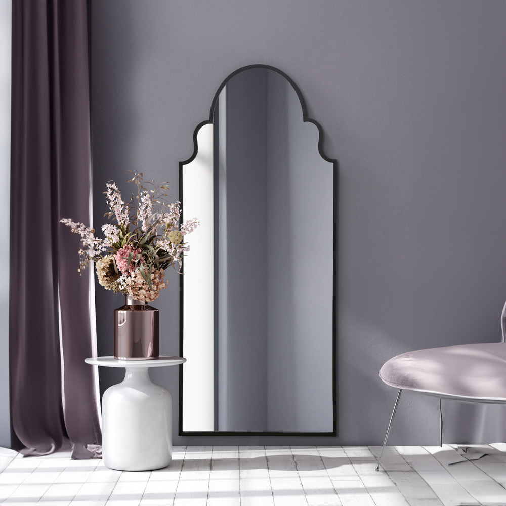 The Arcus Black Arched Metal Leaner Wall Mirror 200 x 85cm