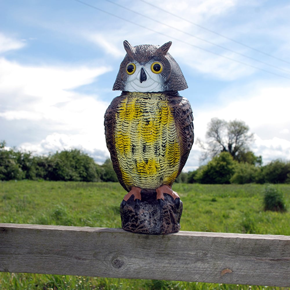 Keep unwanted birds and animals away with The Big Cheese Wind Action Owl. This decoy owl protects your newly seeded lawns, roosting sites, fruit trees and moored boats from pesky birds. It features a wind-activated, 360-degree rotating head to shield a small garden easily. While larger gardens require multiple wind-action owl decoys. This owl has a hollow base to allow you to add stones to weigh it down. Simply position it at a height and ward off nuisance animals from your garden.